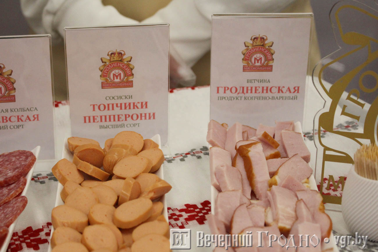 Свои изделия представили ОАО «Гродненский мясокомбинат» и ОАО «Гроднохлебпром». Мясное предприятие угощало покупателей «Евроопт» свининой на брускетту со вкусом прованских трав, ветчиной «Гродненской», сосисками «Топчики пепперони» и сыровяленой колбасой «Рублевской».
