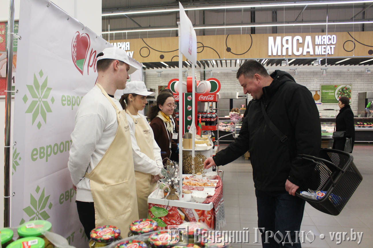 ОАО «Гродненский мясокомбинат» и ОАО «Гроднохлебпром» благодарят сеть магазинов «Евроопт» за сотрудничество и возможность познакомить жителей Беларуси с продукцией своих предприятий!