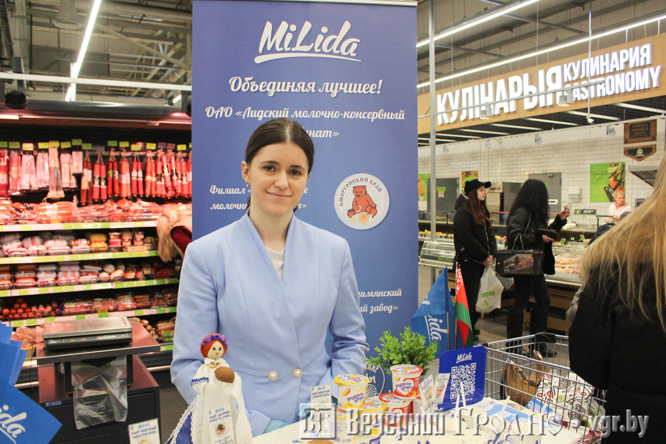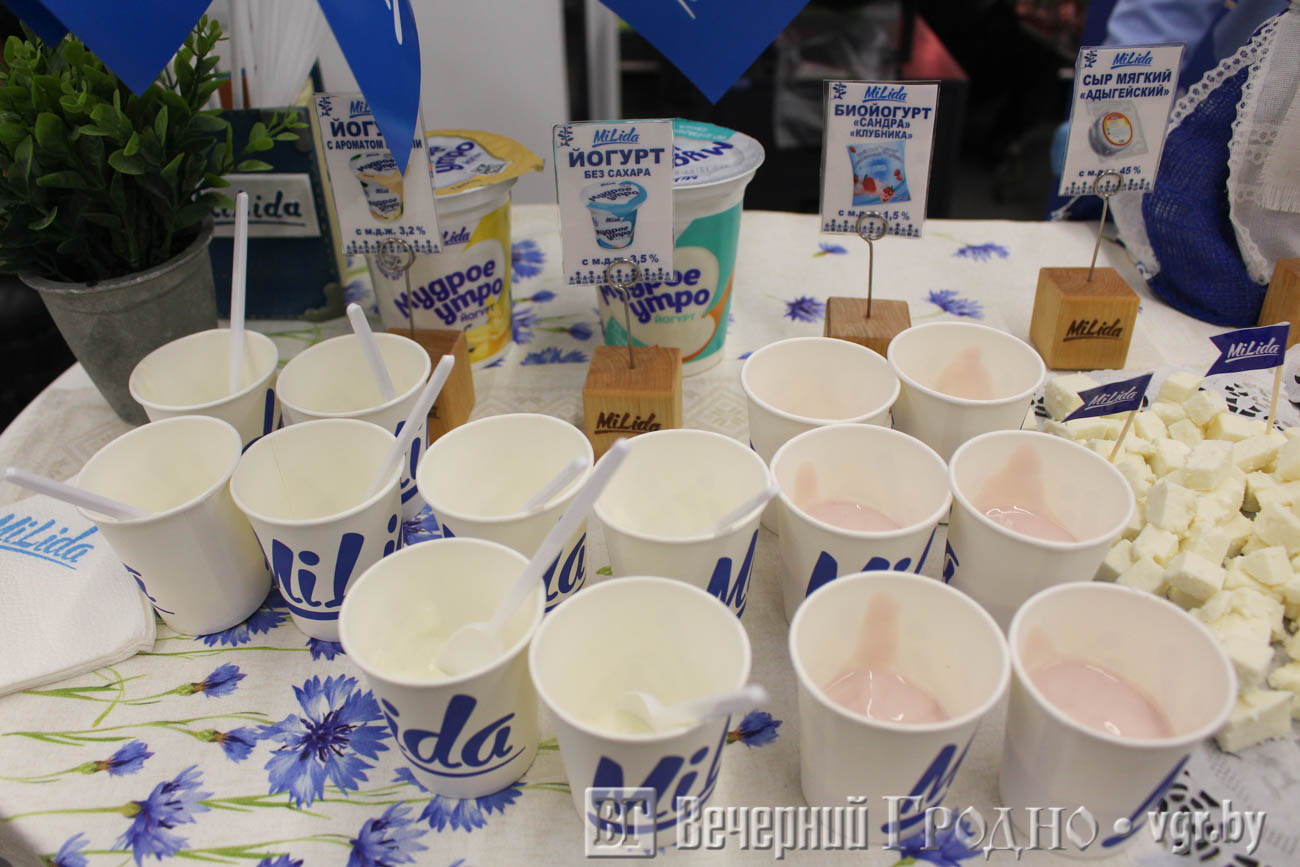 Не меньшим спросом пользовалась продукция Лидского молочно-консервного комбината. Лидачане предложили попробовать мягкие сыры — «Белорусский клинковый», «Адыгейский», «Агрей» с пряностями, «Припятский», а также широкий ассортимент йогуртов и биойогуртов с фруктовыми наполнителями.