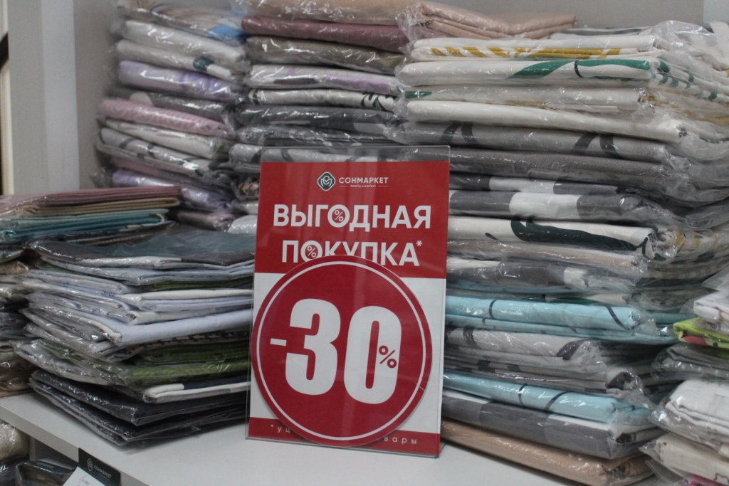 Отдельные позиции в магазине «СонМаркет» можно приобрести по очень выгодной стоимости. На уцененные товары: наволочки, простыни, пододеяльники, полотенца и т. д. — действует скидка 30 %.