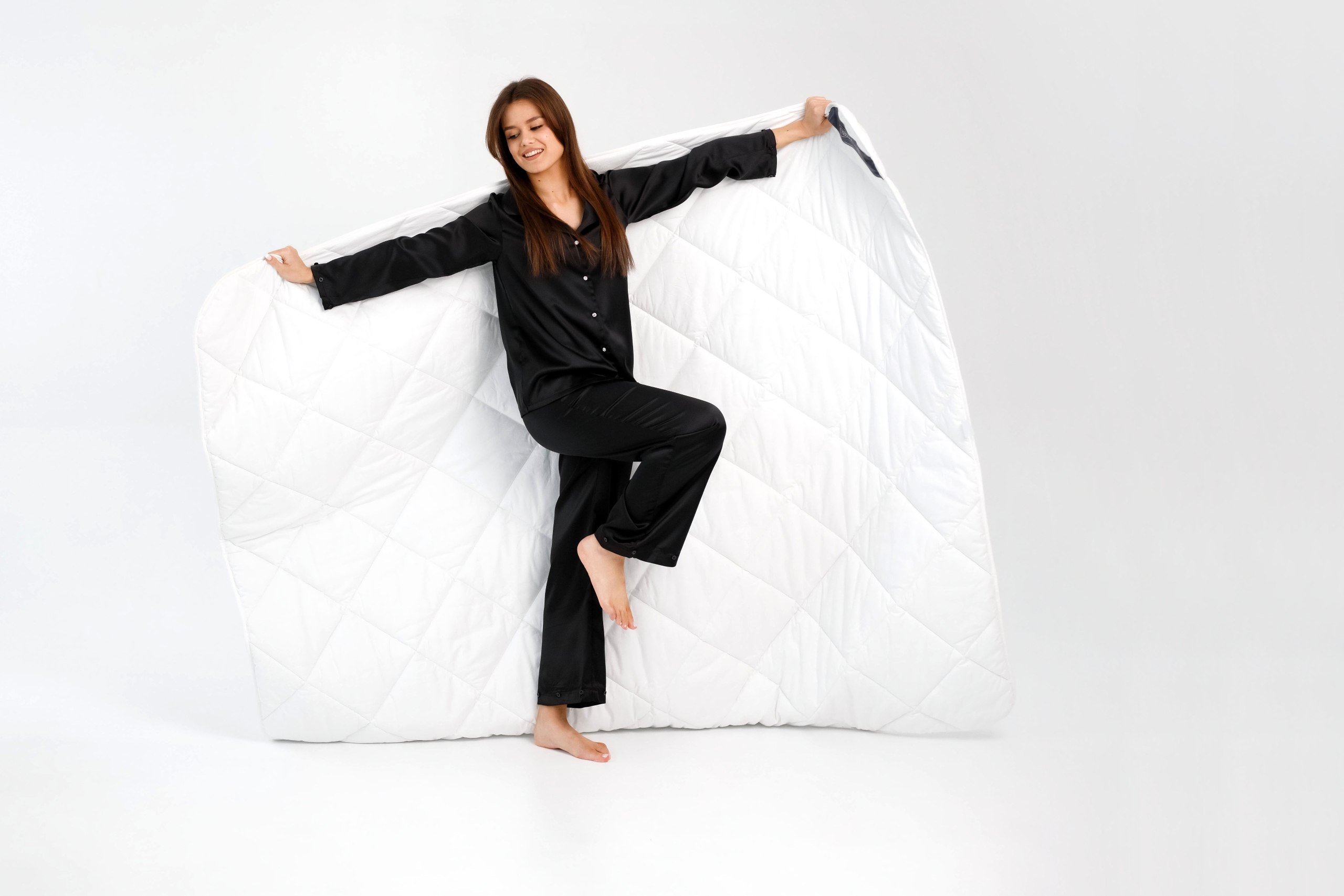 В такую морозную зиму, как в этом году, хочется потеплее укутаться. Так что еще одно одеяло лишним не будет. В магазине они есть разных размеров: полуторное, двуспальное или «евро». Одеяла представлены в двух коллекциях «Люкс» и «Премиум». Наполнение выбираете сами: лебяжий пух, лен, термофайбер или бамбук. Верх — 100 %-ный хлопок (может быть тик или бязь).