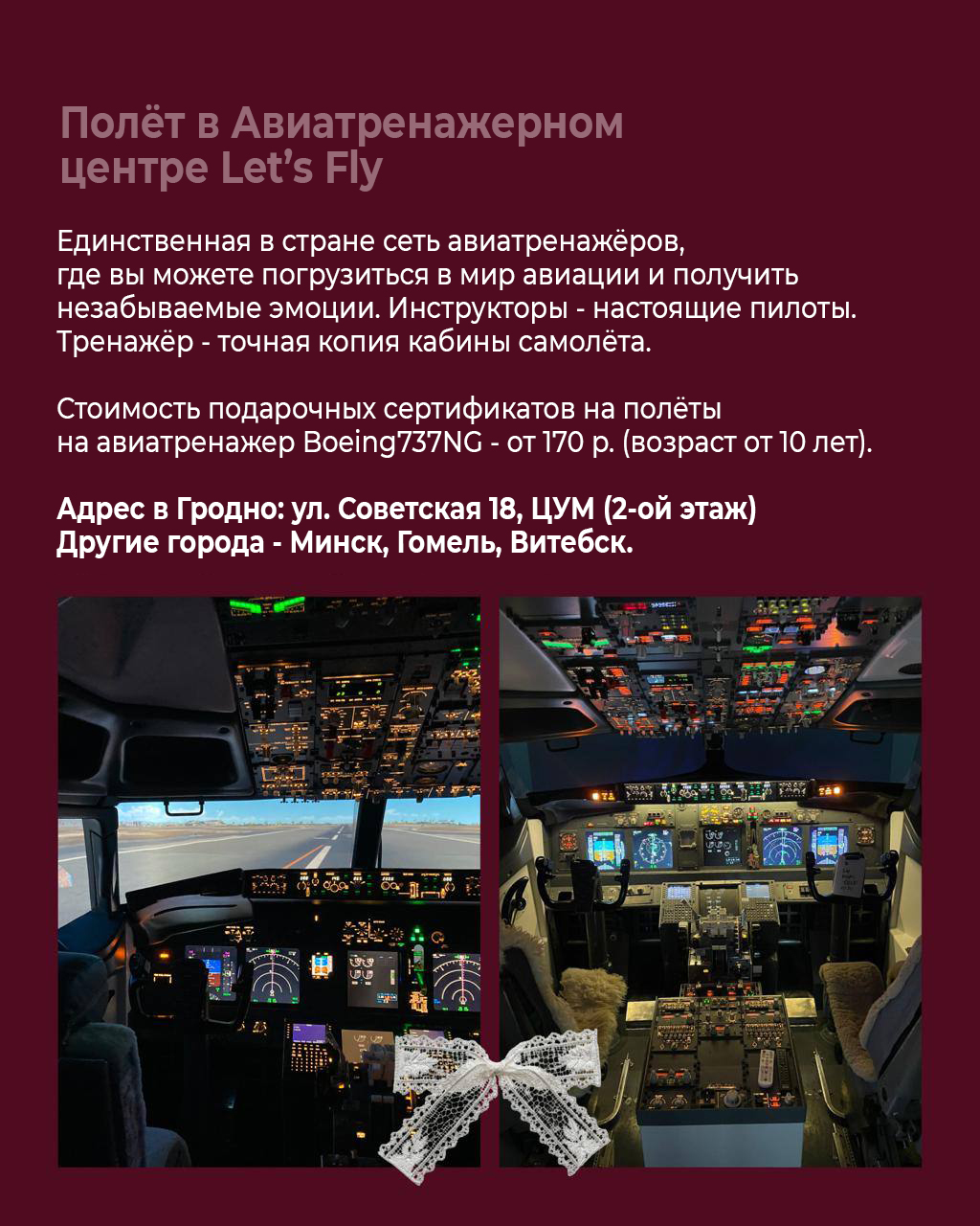 Стоимость подарочных сертификатов на полёты на авиатренажер Boeing737NG — от 170 р. (возраст от 10 лет).