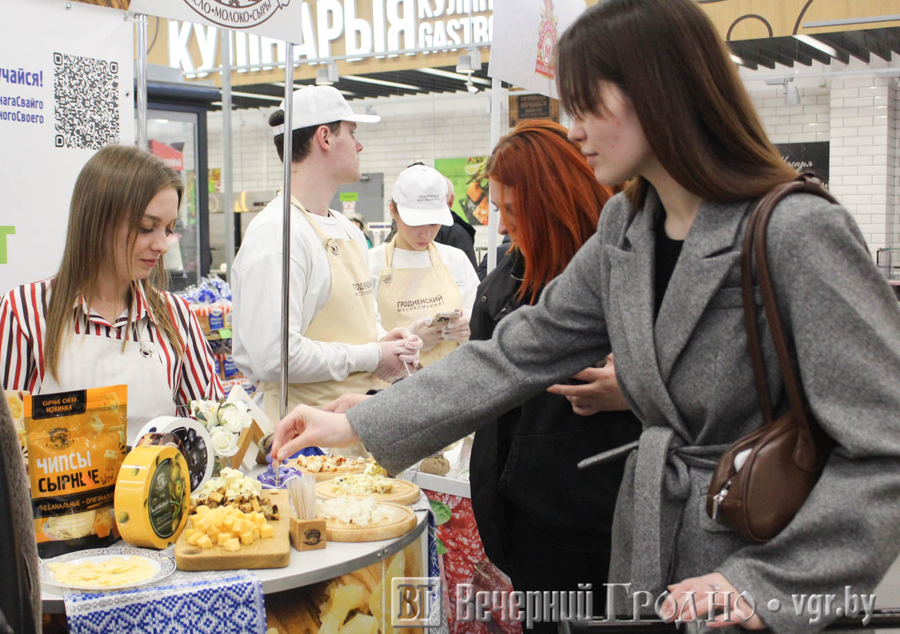В пятницу, 27 февраля, дегустации в рамках проекта «Кожная пятнiца — роднае, сваё» прошла в гипермаркете «Евроопт» в Гродно. Традиционно в Гродно местом проведения стал ТЦ OldCity.