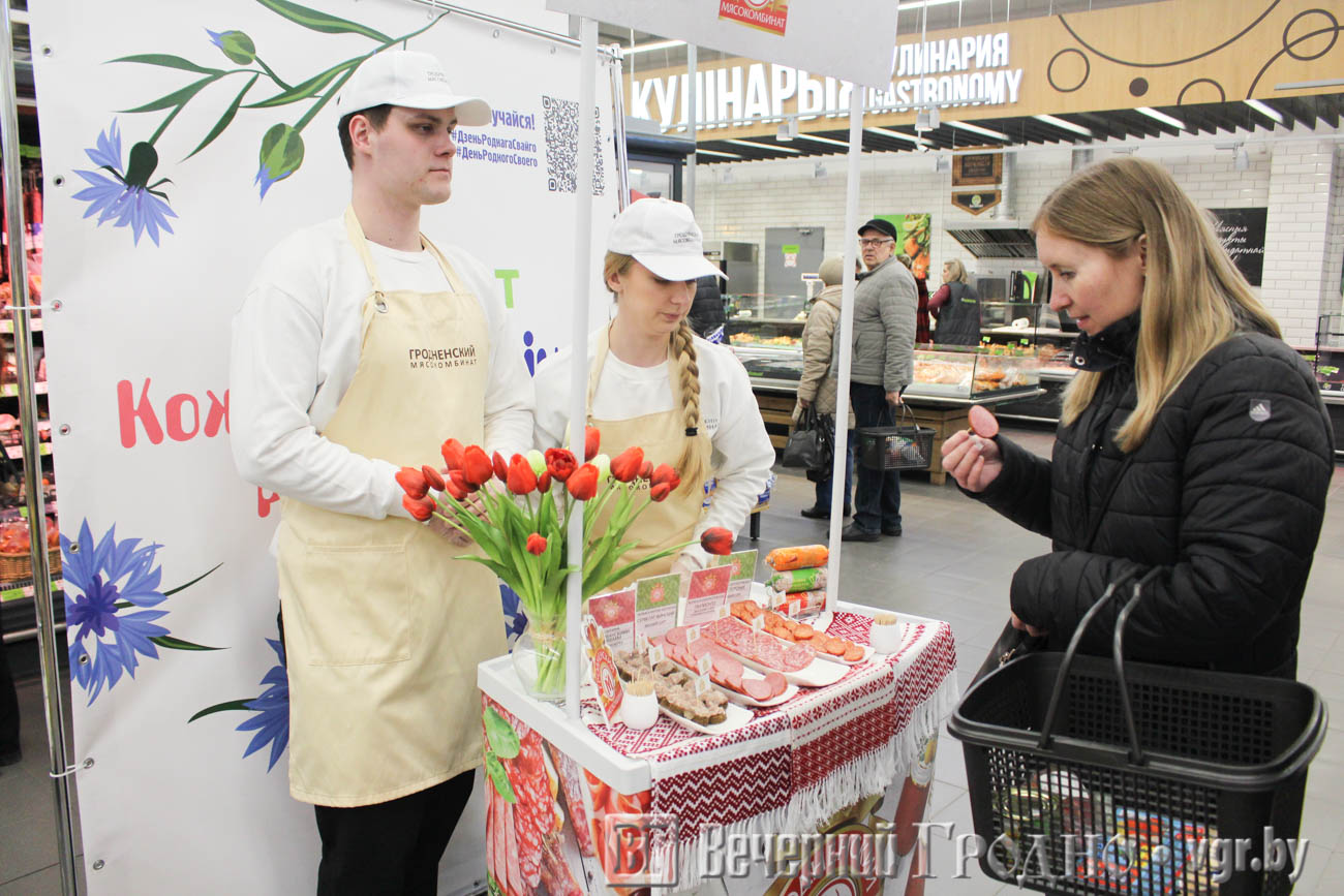 В пятницу, 6 марта, дегустации в рамках проекта «Кожная пятнiца — роднае, сваё» прошла в гипермаркете «Евроопт» в Гродно. Традиционно в Гродно местом проведения стал ТЦ OldCity. перед 8 марта люди закупались к праздникам и активно участвовали в дегустации.