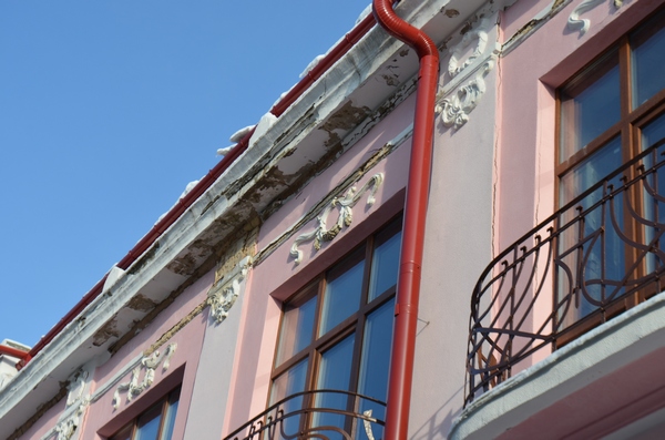 Фотофакт: На здании ресторана «Белосток» обвалилась лепнина