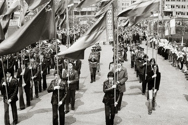 9 мая 1980 г. Этот фоторепортаж с праздничного шествия сделала Наталья Дорош, в то время она работала фотокорреспондентом областной строительной многотиражки «Высота». Фотограф вспоминает, что в День Победы на улице стояла теплая, но пасмурная погода.