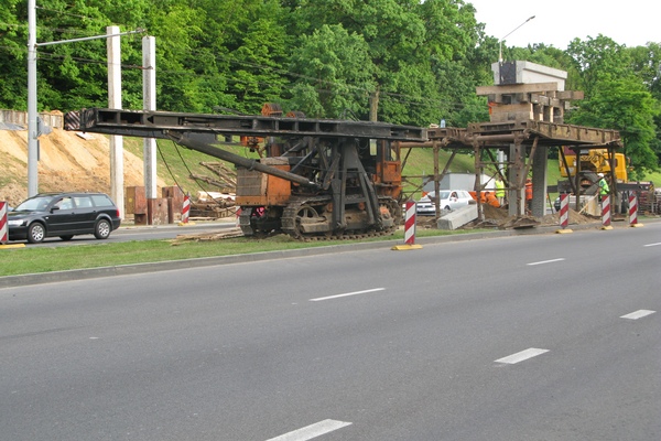 Сегодня строительно-монтажные работы здесь идут полным ходом. Практически установлены опоры будущего моста. Рабочие ДСТ №6 трудятся до позднего вечера.