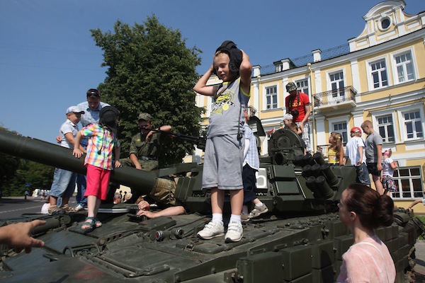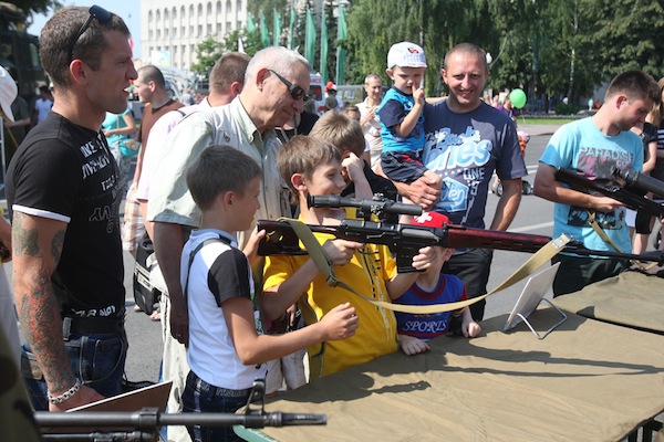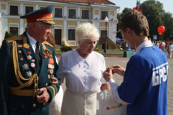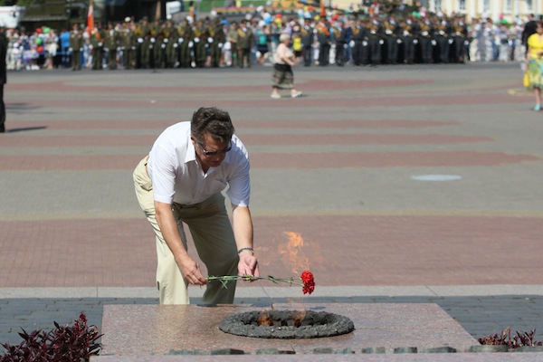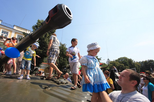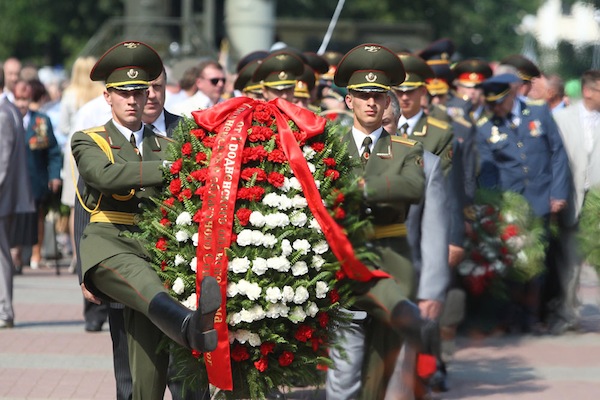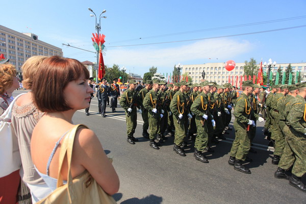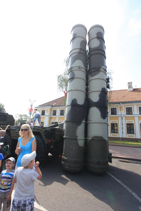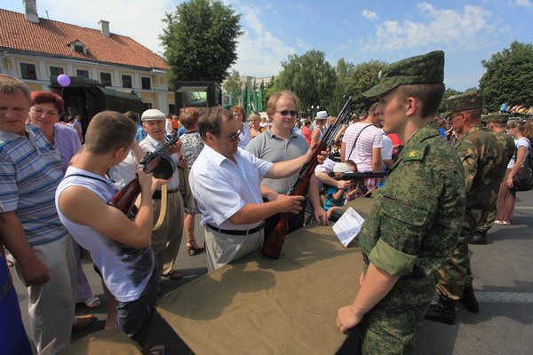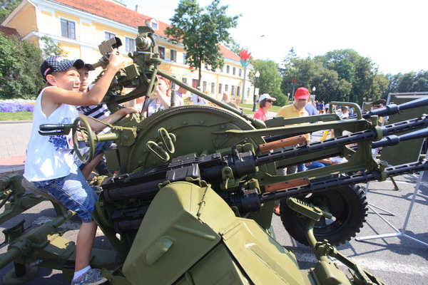 3 июля днем традиционно прошел торжественный митинг и парад. А на площади Тизенгауза дети и взрослые с интересом рассматривали военную технику — необычная выставка работала под открытым небом.