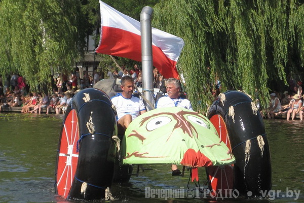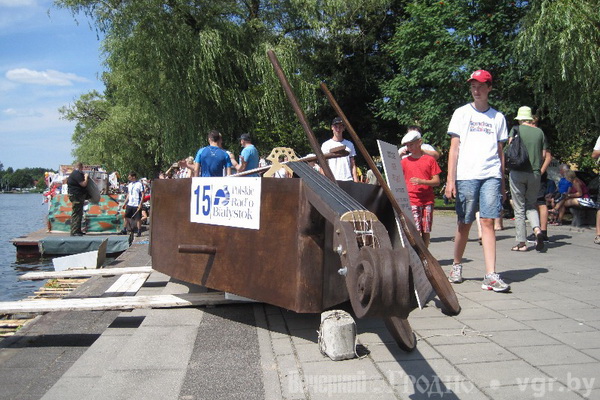 — Важным условием является материал конструкции. Устройства фабричного производства к конкурсу не допускаются, — объяснял критерии оценки организатор мероприятия корреспондент радио «Белосток» Марек Гонсеровский. — Плавательное средство обязательно должно не только удержаться на воде, но и проплыть определенное количество метров. И самое главное, победителем становится та команда, которая смогла развлечь окружающих, произвести наибольшее впечатление на зрителей и жюри.