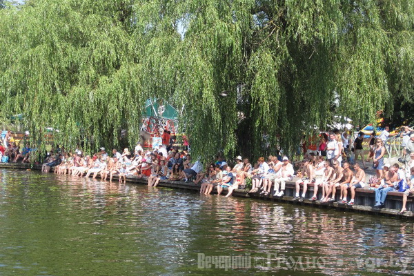 Тридцатиградусная жара, тысячи зрителей, заполнившие берега реки Нетты, забавные комментарии ведущего с самодельного плота в виде теннисного корта — так проходил в этом году в польском городе Августове 18-й чемпионат в плавании на лишь бы чем «Что должно плавать — не утонет».