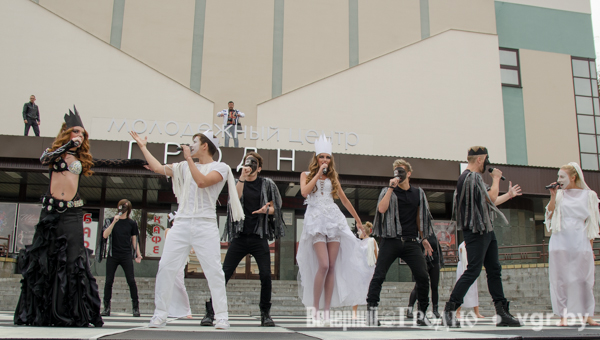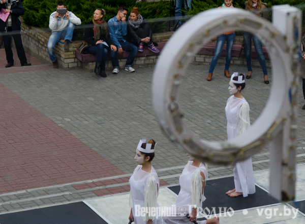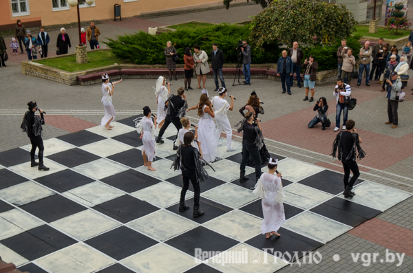 Напротив молодежного центра «Гродно» из переработанных автошин выложили 9-метровую шахматную доску, а наряды для фигур сделали из бумажных пакетиков для продуктов. Участники акции не только «разыграли» партию в шахматы, но и пели.