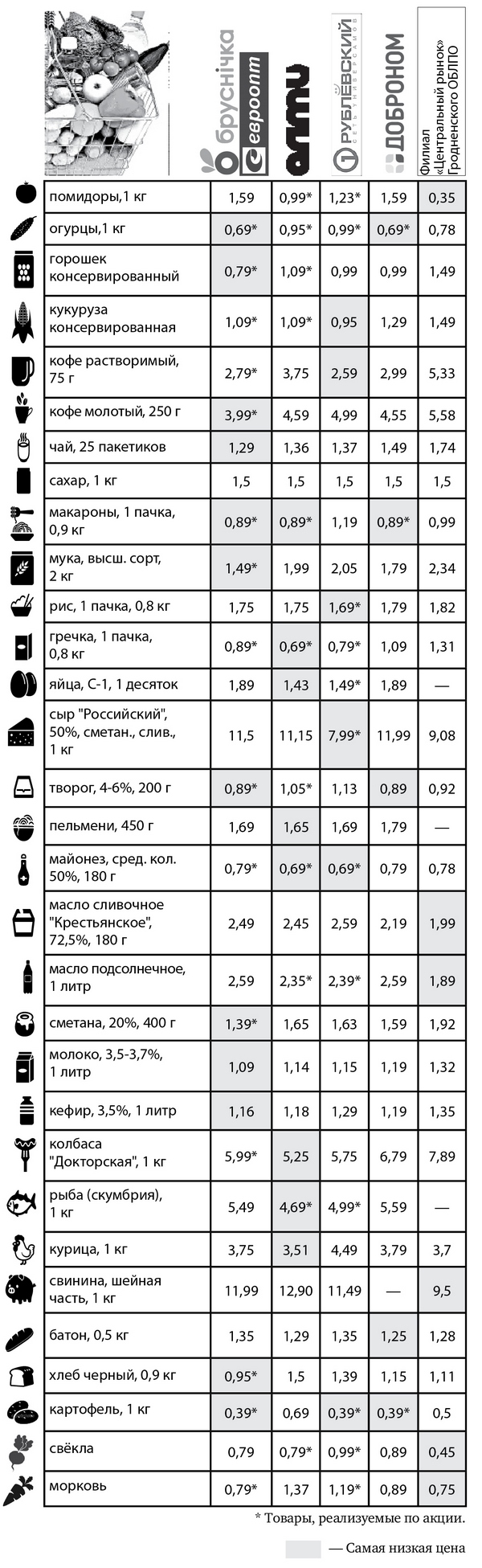 Сколько стоят хлеб, овощи или мясо, где продукты дешевле, а в каких магазинах есть скидки — каждую неделю мы будем следить за ценами в крупных торговых сетях и публиковать их в газете и на сайте.