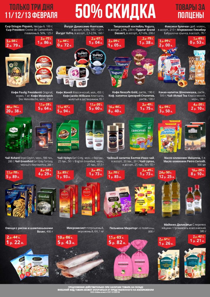 Полюбившаяся многим акция от гипермаркетов «Корона» — «Товары за полцены» — возвращается. В феврале любителей сэкономить ждут сотни товаров со скидками в 50%!