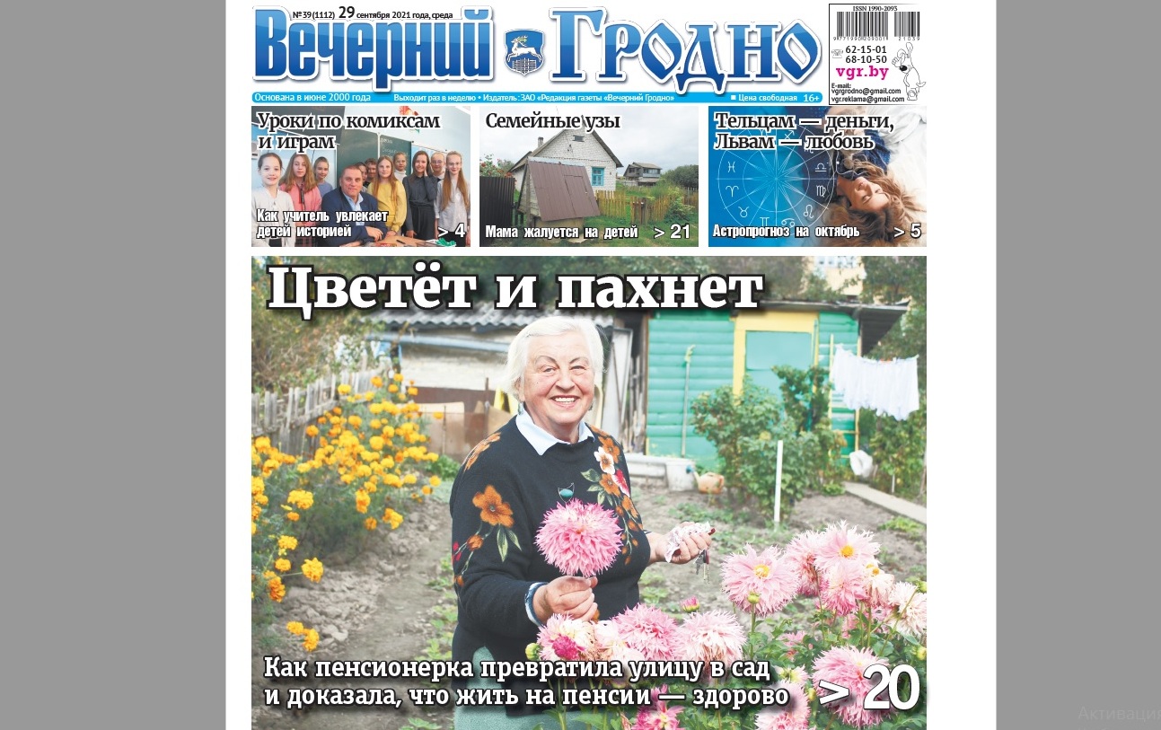 Как пенсионерка украшает город цветами, пожилая мама жалуется на детей и уроки по комиксам — анонс свежего номера газеты «Вечерний Гродно»