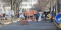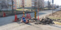 На городских улицах идут активные дорожные работы.