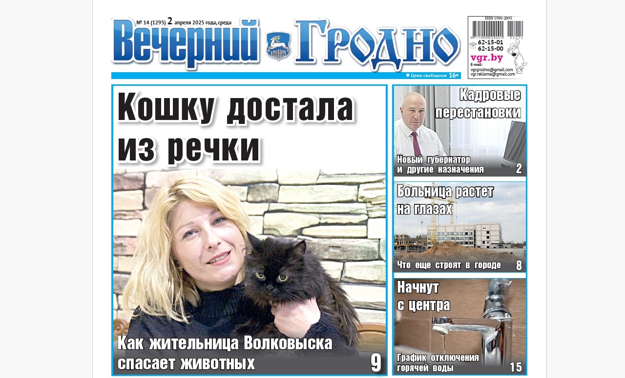 Как женщина спасает животных, новые строительства в городе и подробный график отключения воды — анонс свежего номера газеты «Вечерний Гродно»