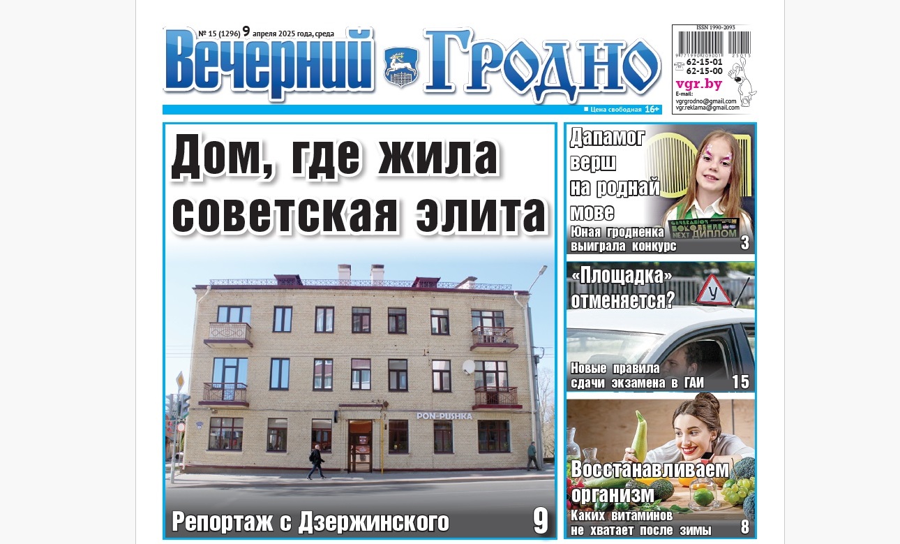Репортаж с Дзержинского, победа юных талантов и новые правила сдачи экзамена в ГАИ — анонс свежего номера газеты «Вечерний Гродно»