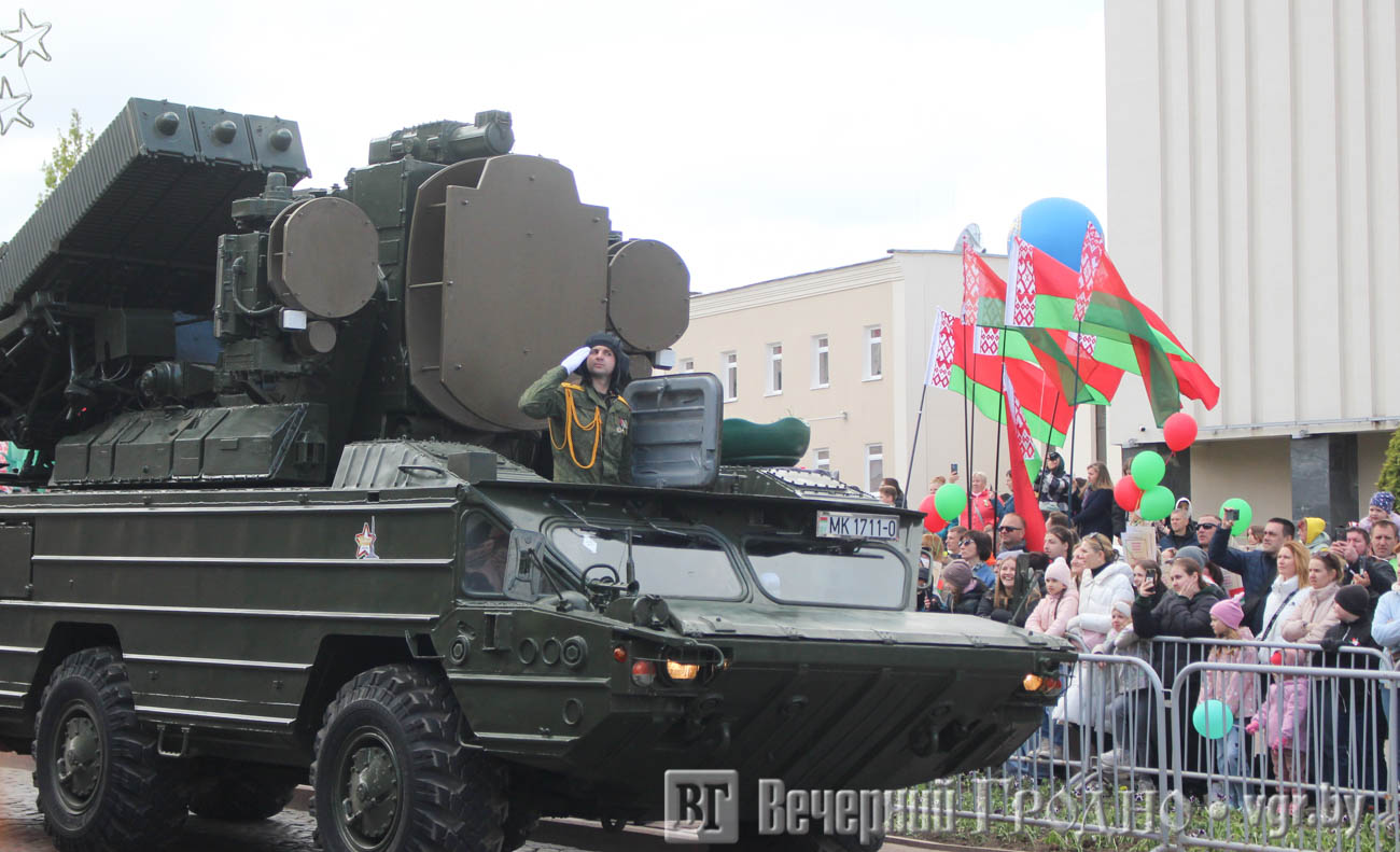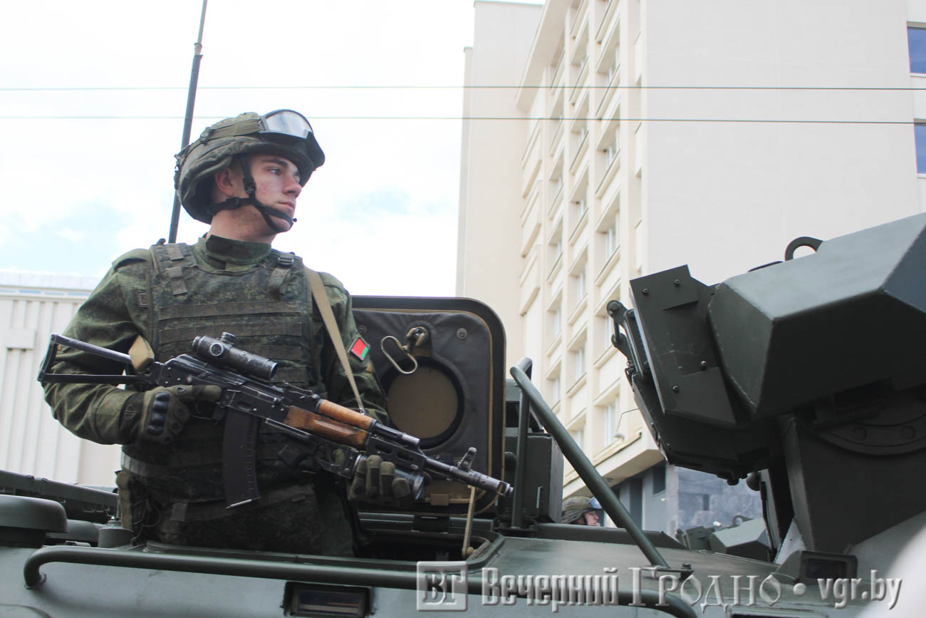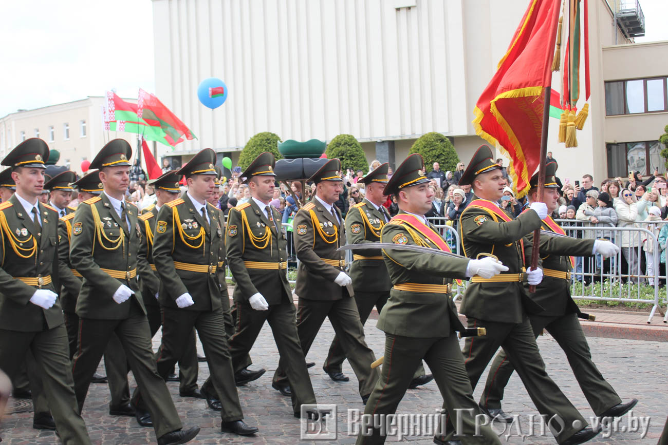 Кульминацией официальной части стал парад, в котором участвовали войска гродненского гарнизона. Зрители увидели прохождение парадных коробок, а также современную военную технику, которая стоит на вооружении у белорусской армии.