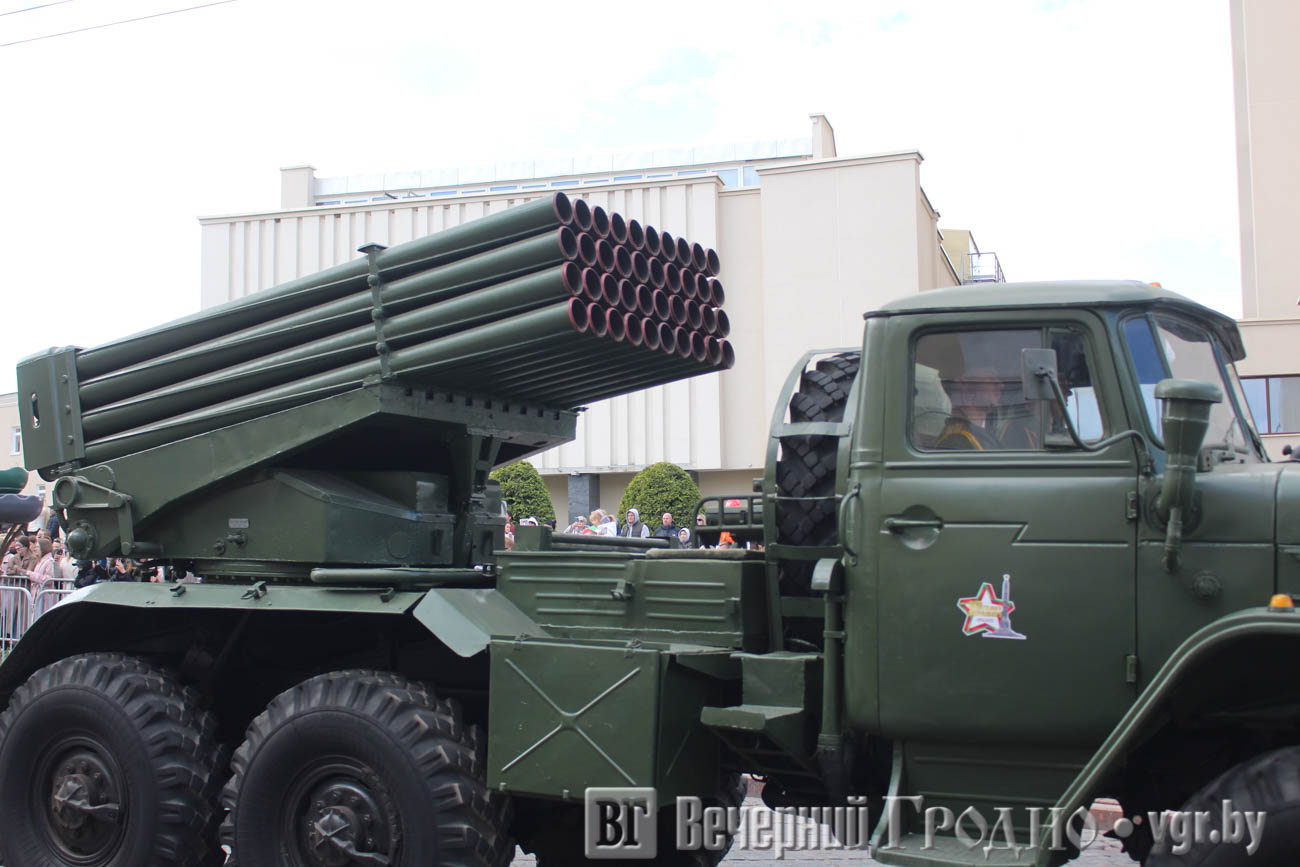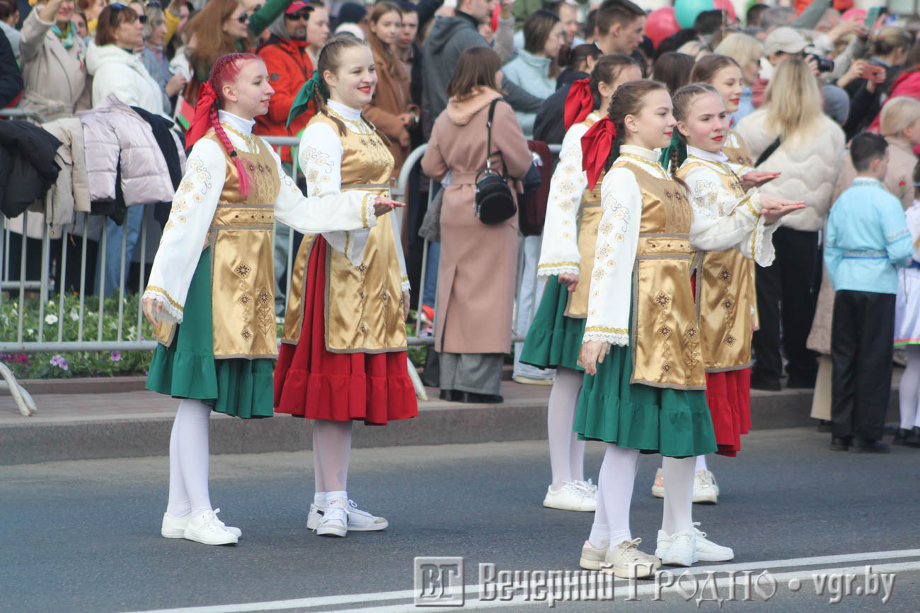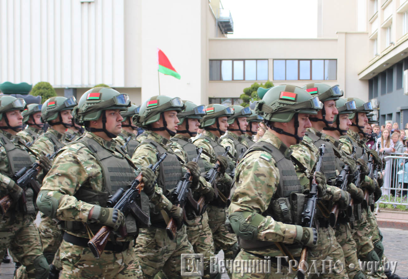 Кульминацией официальной части стал парад, в котором участвовали войска гродненского гарнизона. Зрители увидели прохождение парадных коробок, а также современную военную технику, которая стоит на вооружении у белорусской армии.