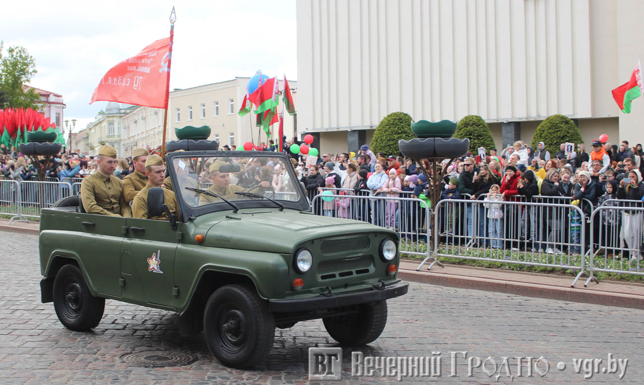Праздничные мероприятия стартовали ранним утром в пятницу, 9 мая, в центре Гродно.