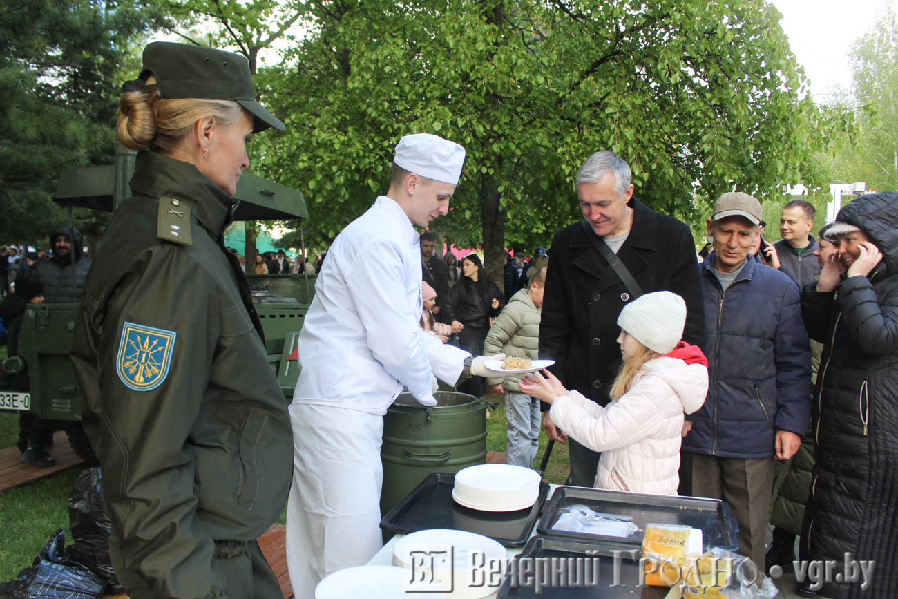 Гродненцы стояли в очереди за солдатской кашей и делали снимки на многочисленных фотозонах.