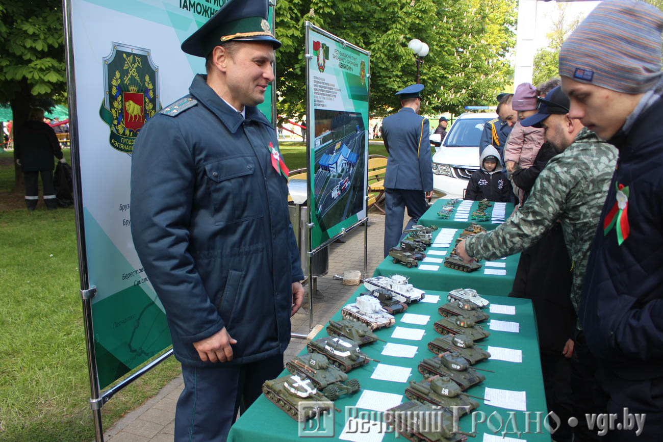 А в парке Жилибера работали интерактивные площадки: полевая библиотека, батлейка, выставка моделей танков, показательные выступления сотрудников правоохранительных органов.