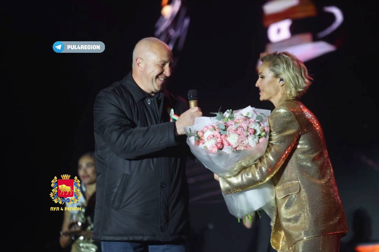 Председатель Гродненского облисполкома Юрий Караев вручил певице букет цветов.