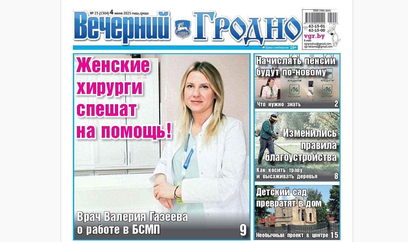 Интервью с врачом БСМП, начисление пенсий по-новому и что строят в городе — анонс свежего номера газеты «Вечерний Гродно»