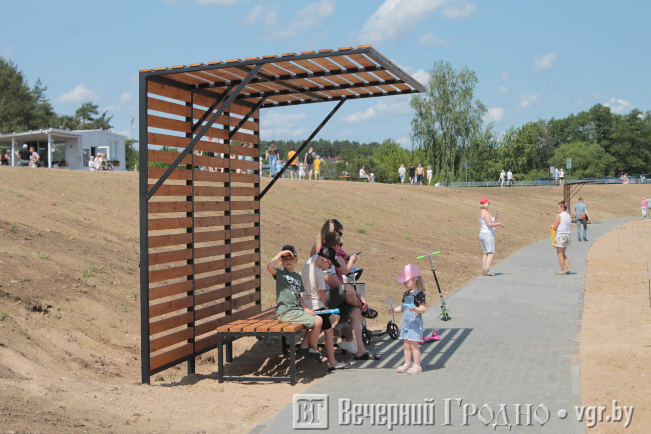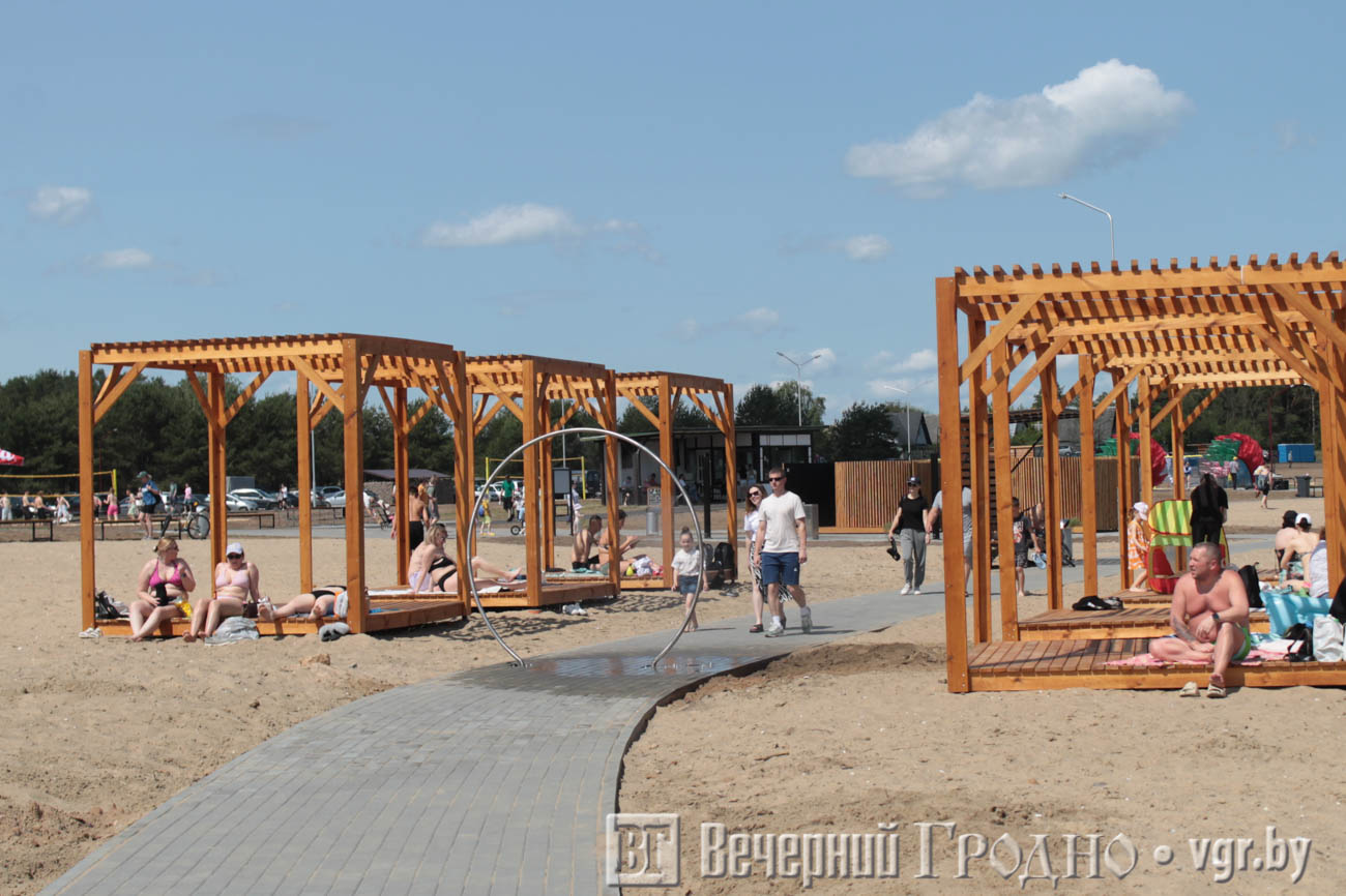 Фотофакт. Гродненцы отдыхают на новой пляжной зоне Юбилейного озера
