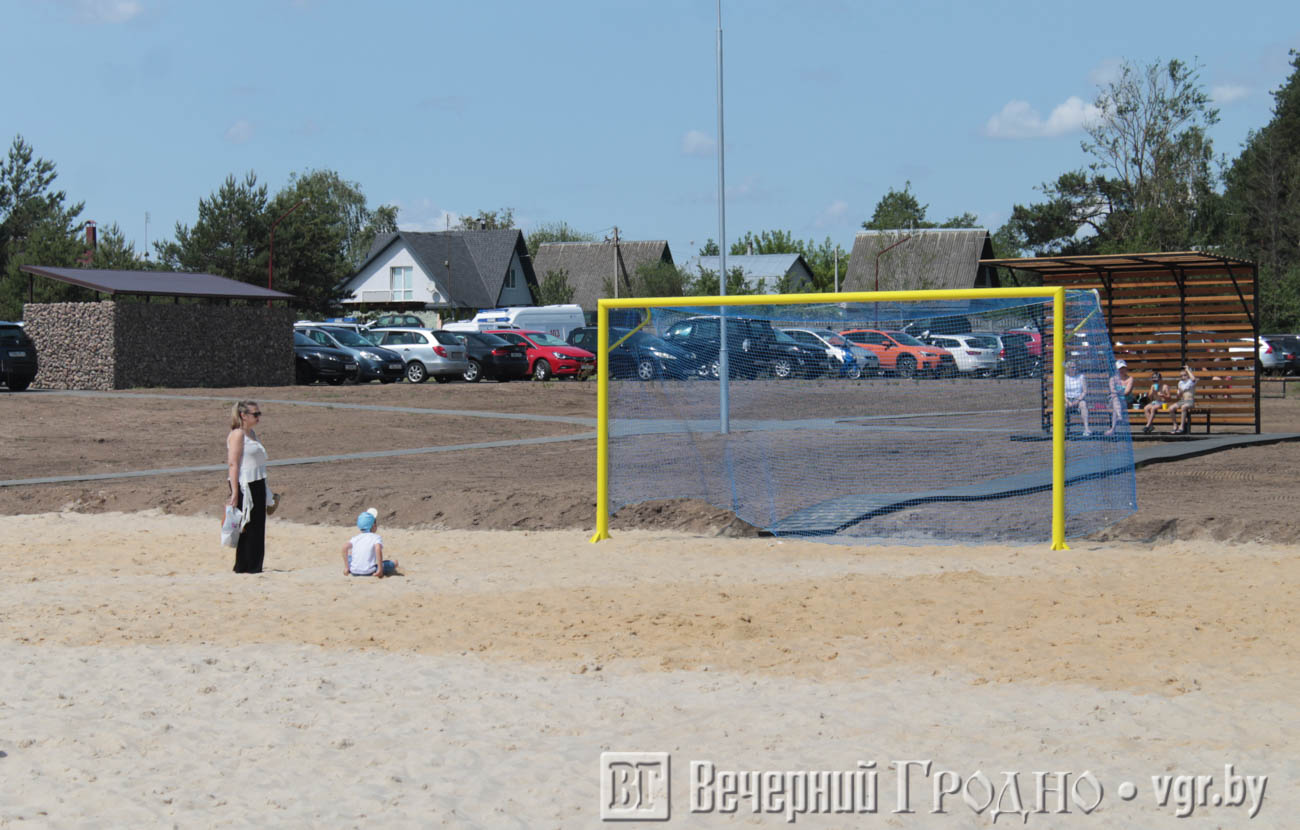 В этом году пляжная зона изменилась до неузнаваемости. Здесь появились деревянные навесы и настилы. Обновились спортивные площадки и душевые кабины, построили огромный детский городок.