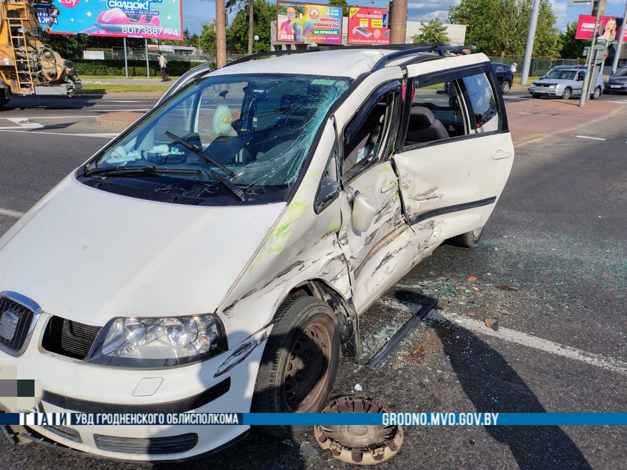 Как сообщает ГАИ Гродно, 27-летний водитель автобуса двигался по кольцевой развязке со стороны улицы Суворова в направлении улицы Горновых и проехал на запрещающий (красный) сигнал светофора, не уступил дорогу и совершил столкновение с движущимся справа со стороны улицы Победы в направлении Советских Пограничников автомобилем «Сеат» под управлением 65-летнего водителя.