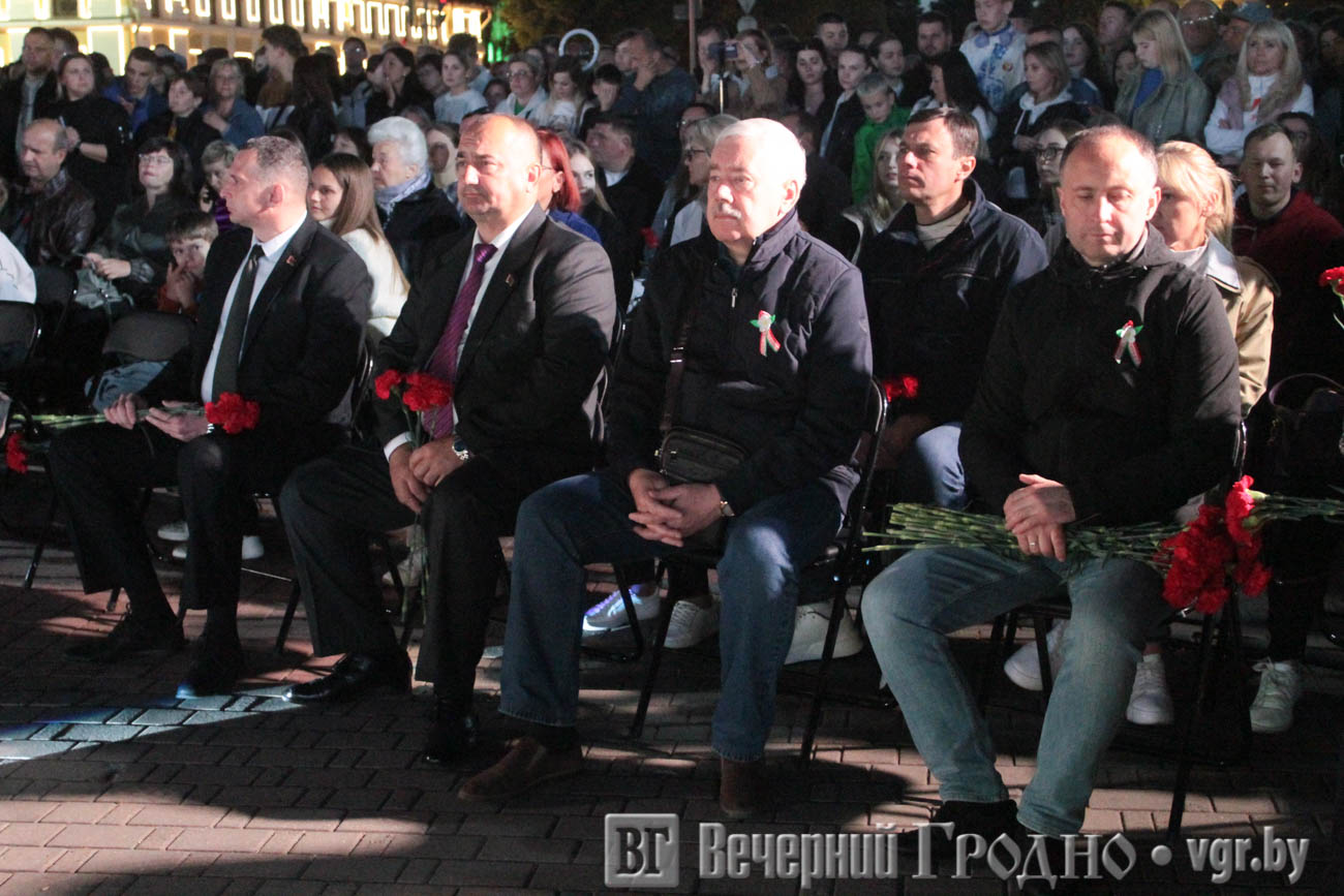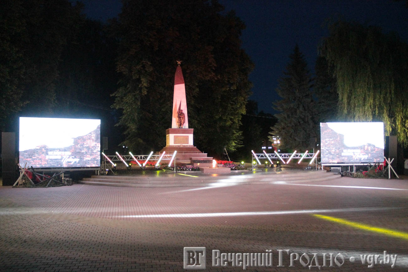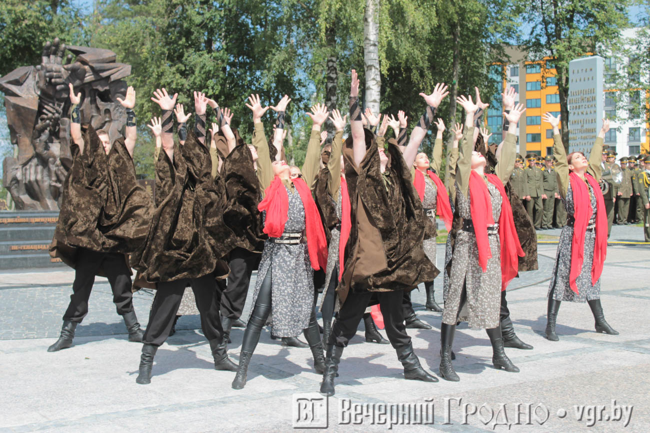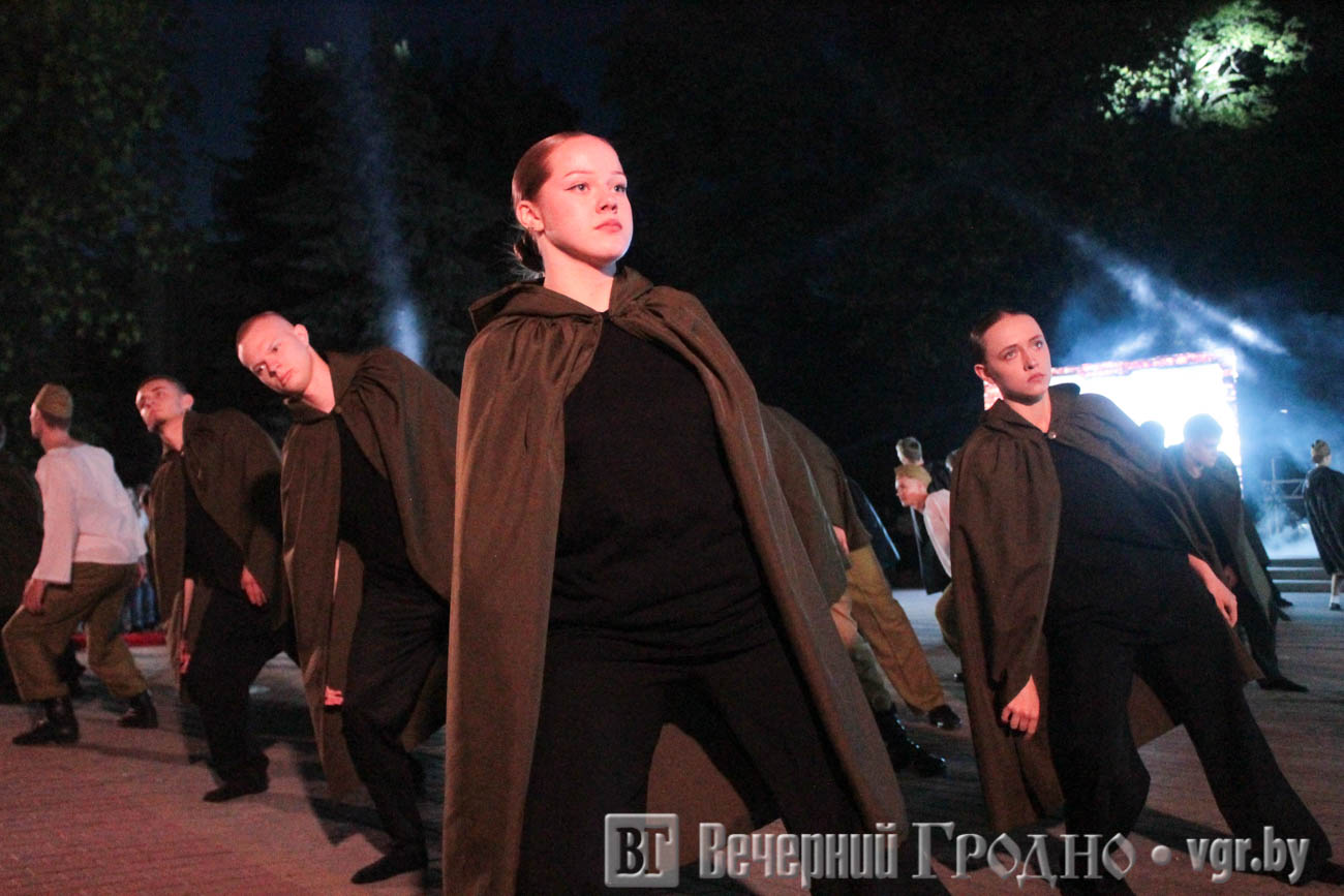 Вечером в парке Жилибера возле братской могилы воинов и партизан состоялось театрализованное представление, которое организовали учащиеся и педагоги Гуманитарного колледжа ГрГУ имени Янки Купалы.