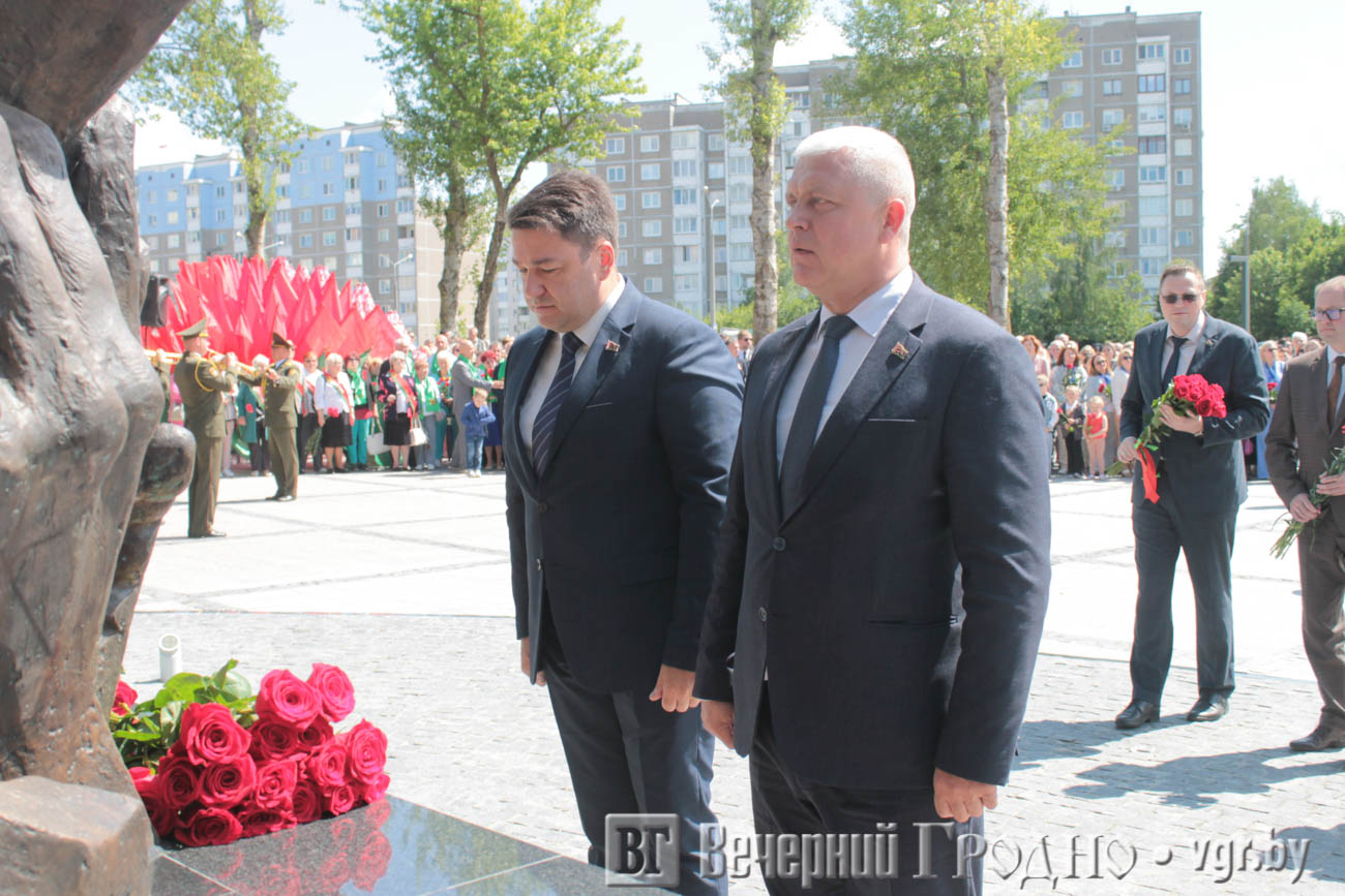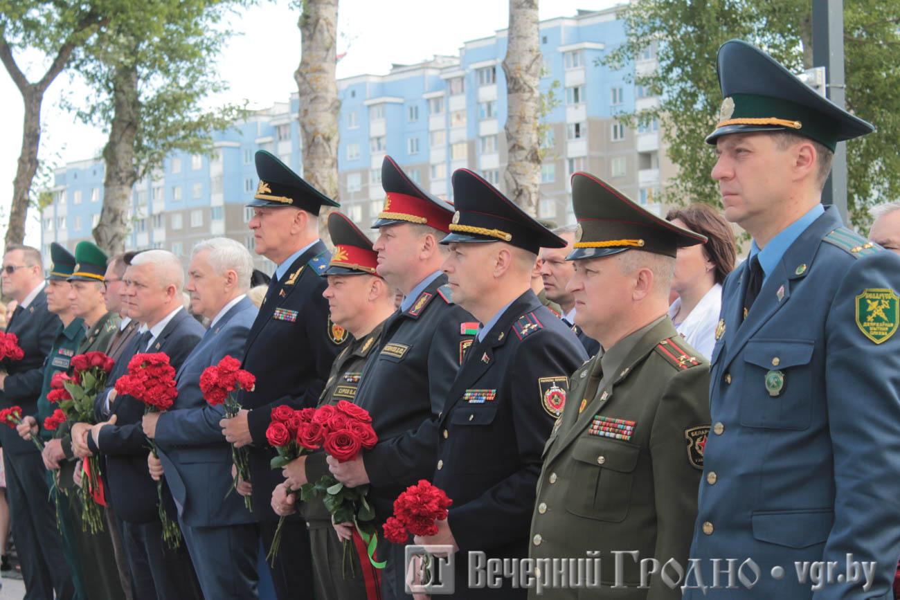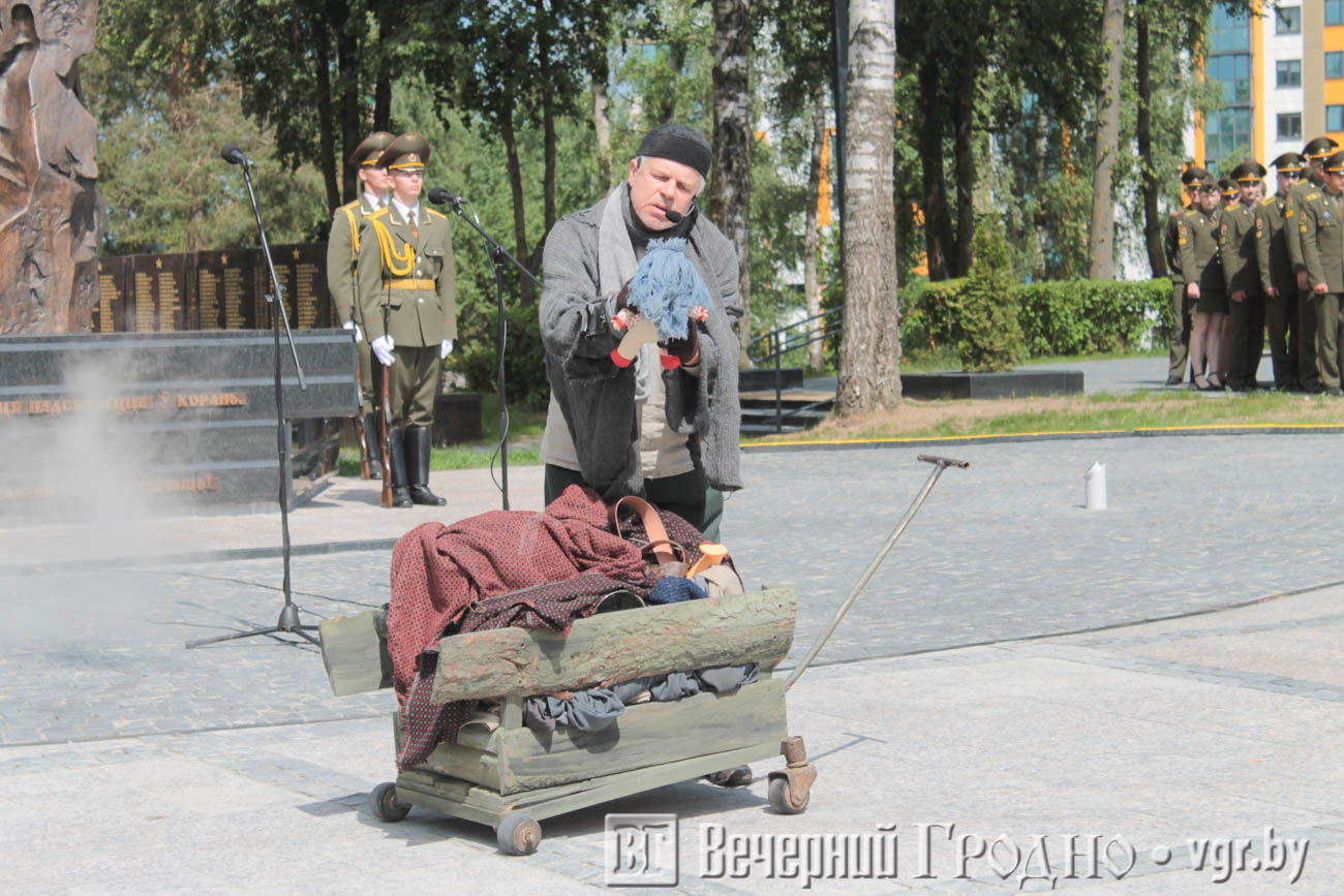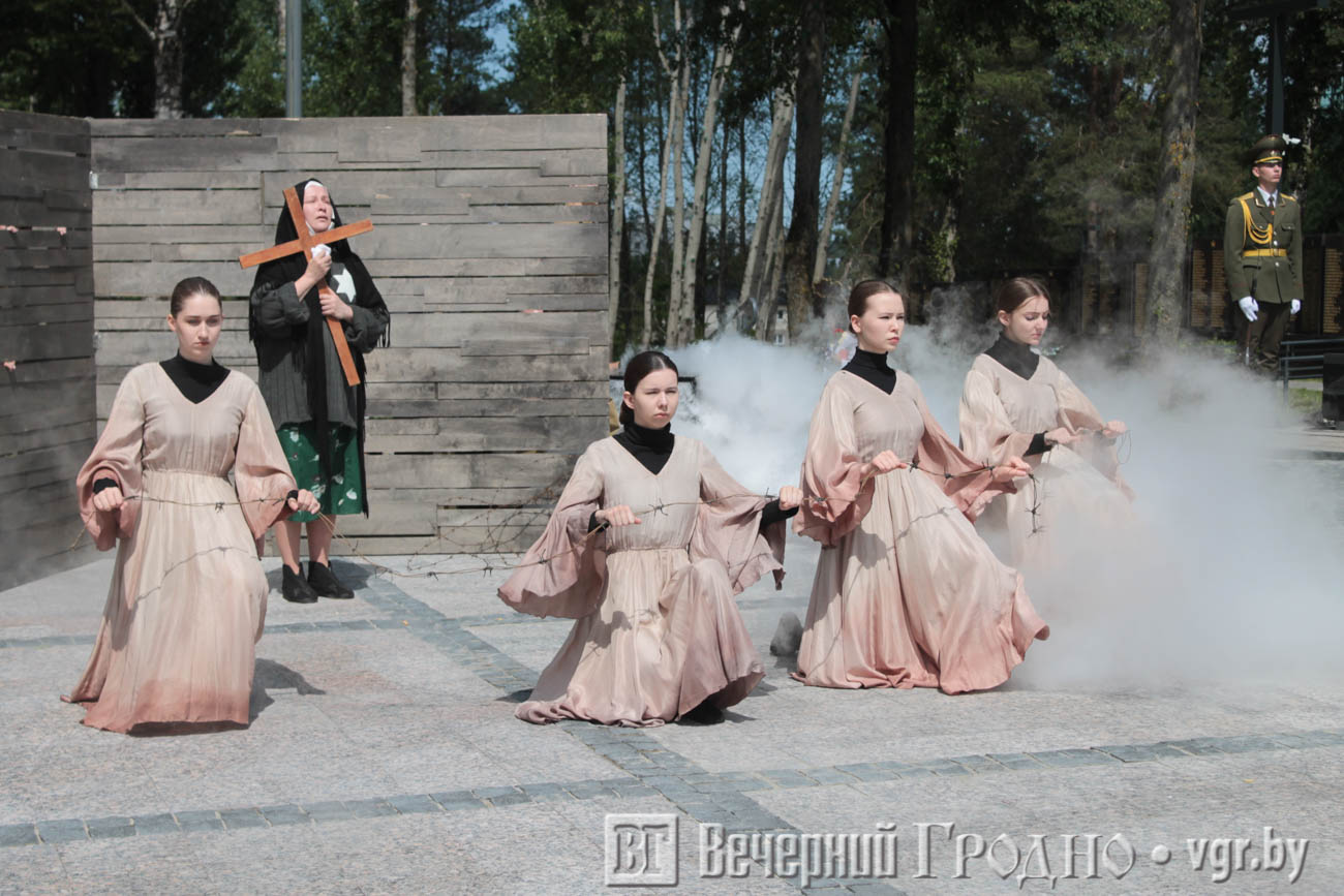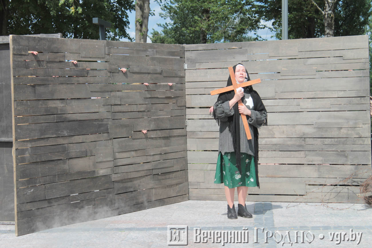 Вечером в парке Жилибера возле братской могилы воинов и партизан состоялось театрализованное представление, которое организовали учащиеся и педагоги Гуманитарного колледжа ГрГУ имени Янки Купалы.