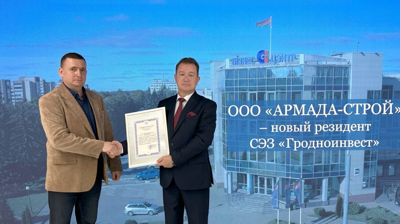 ООО «АРМАДА-СТРОЙ» стало 11-м предприятием-резидентом СЭЗ зарегистрированным на территории Сморгонского района. На сегодняшний день предприятиями-резидентами СЭЗ «Гродноинвест», расположенными в границах участка в Сморгони, в создание и развитие производств инвестировано порядка 550 млн долл. США.