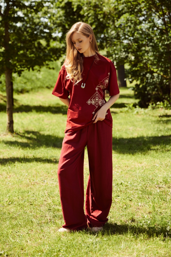 Вторым ключевым материалом коллекции стал традиционный лён, узнаваемый и любимый за фактурность и экологичность. Сочетание рами и льна делает модели из коллекции не только эстетически привлекательными, но и функциональными — в них комфортно в любую погоду.