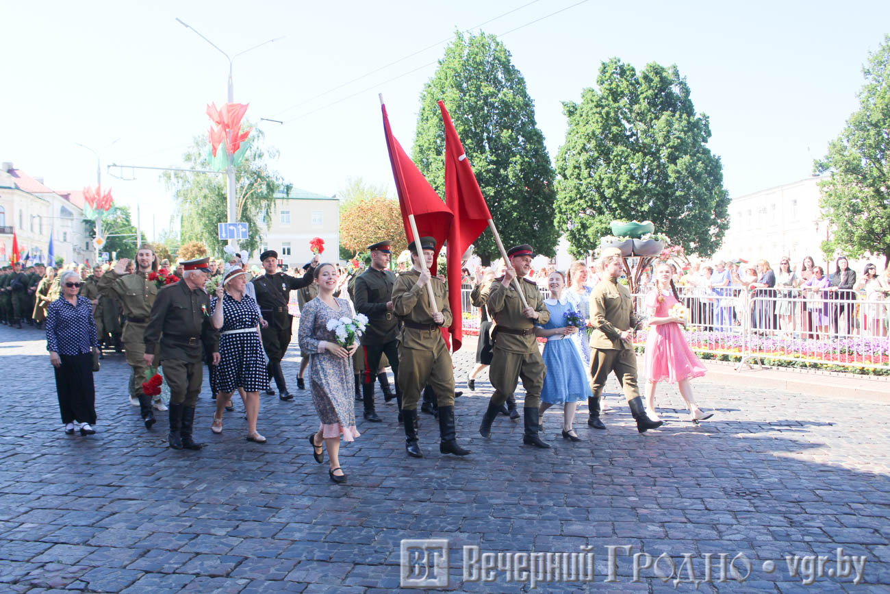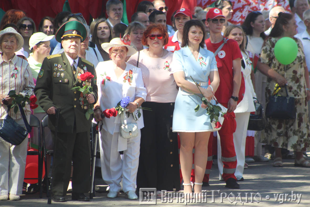 Праздничные мероприятия, в которых участвовали тысячи горожан, начался утром в четверг, 3 июля, в центре Гродно. Для того, чтобы людям было легче переносить жару, организовали точки, где волонтеры раздавали воду. Бочки с питьевой водой стояли в парке Жилибера и на Советской возле ЦУМа.