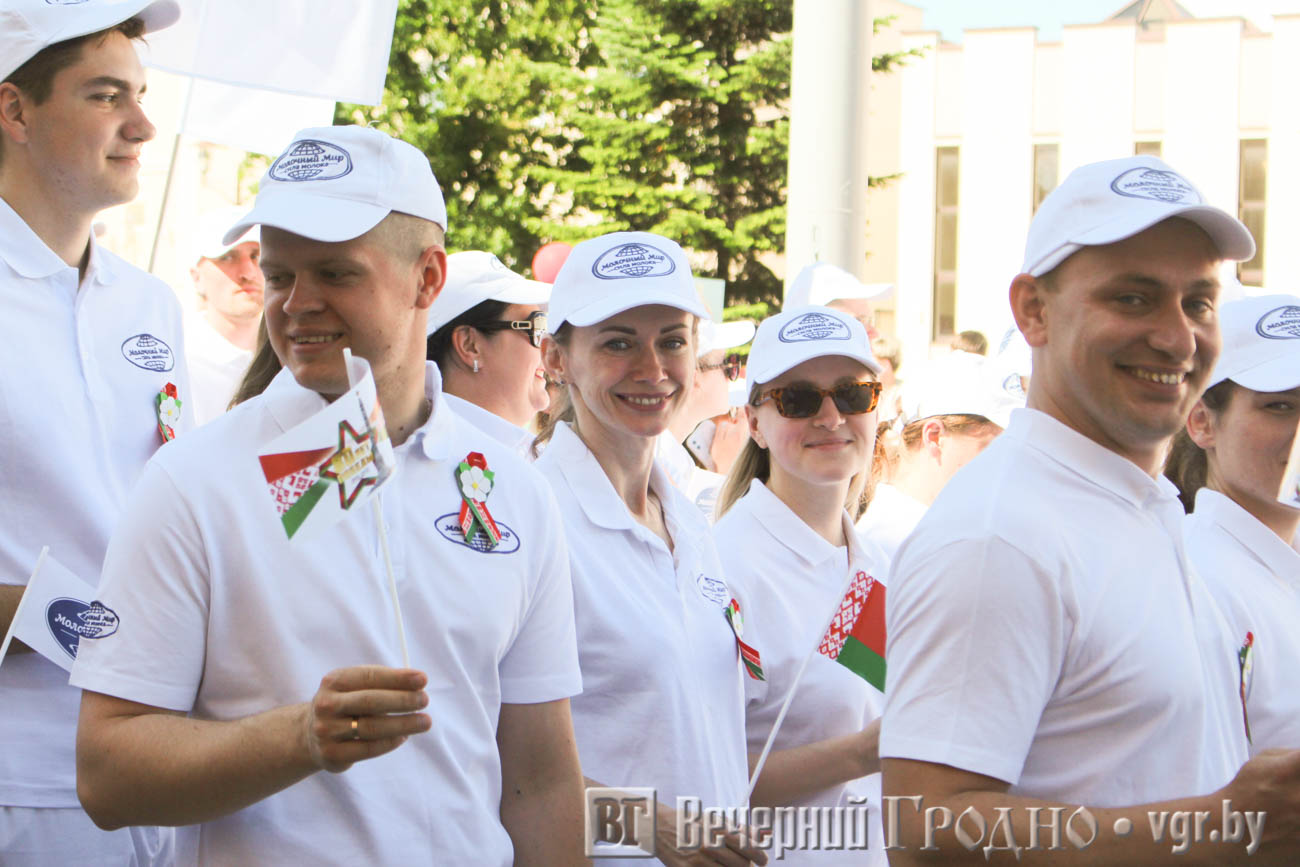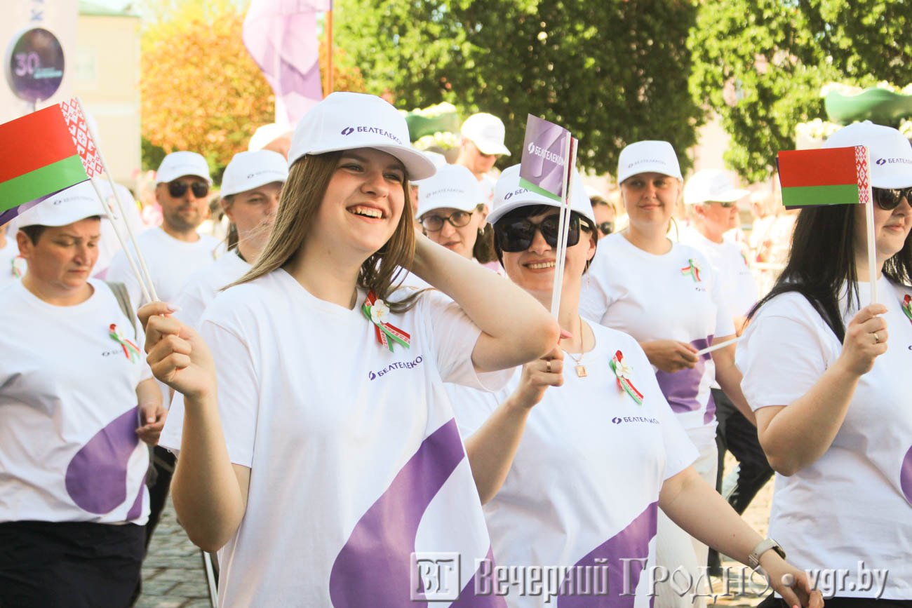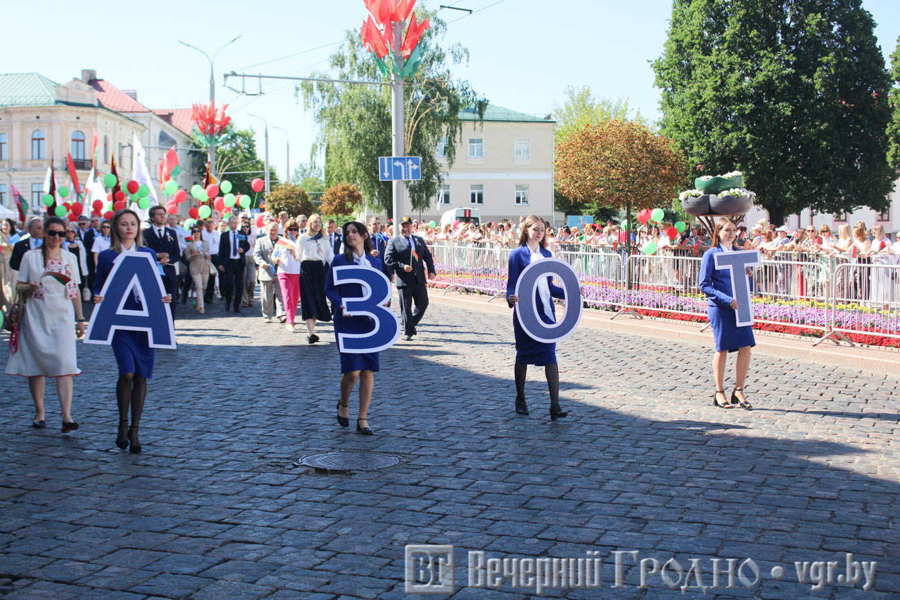 Само шествие разделили на блоки: образование, медицина, промышленность, связь, транспорт, торговля, спорт и другие. В колоннах шли лучшие работники гродненских предприятий, ветераны и молодые специалисты.
