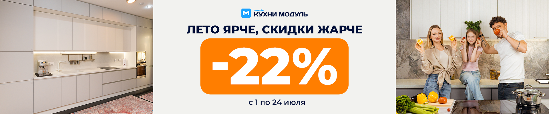 СКИДКА 22% НА КУХНИ В МОДУЛЬ ОНЛАЙН — ТОЛЬКО ДО 24 ИЮЛЯ!