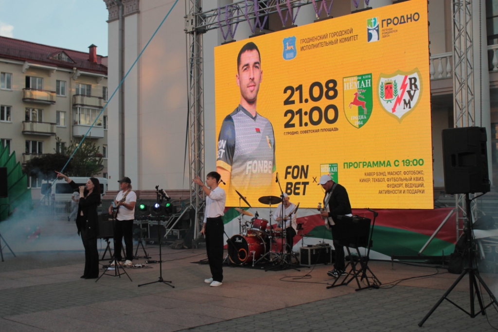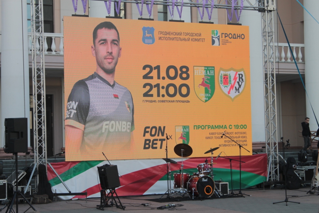 Но в Гродно не оставили «Неман» без поддержки болельщиков и организовали масштабный просмотр матча плей-офф квалификационного раунда Лиги Конференций на большом экране.