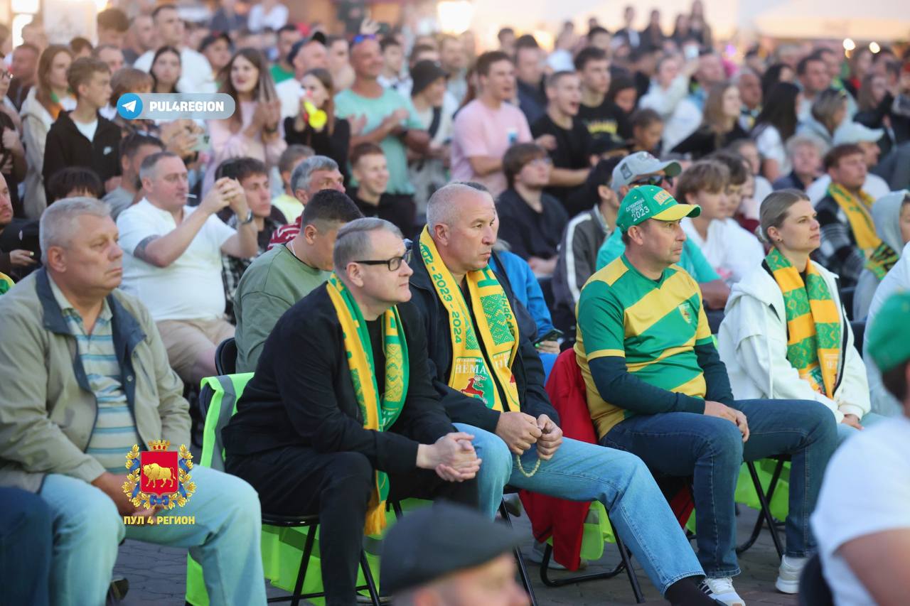 Здесь перед трансляцией организовали развлекательные площадки, провели концерт, после чего большой компанией смотрели матч из Венгрии.