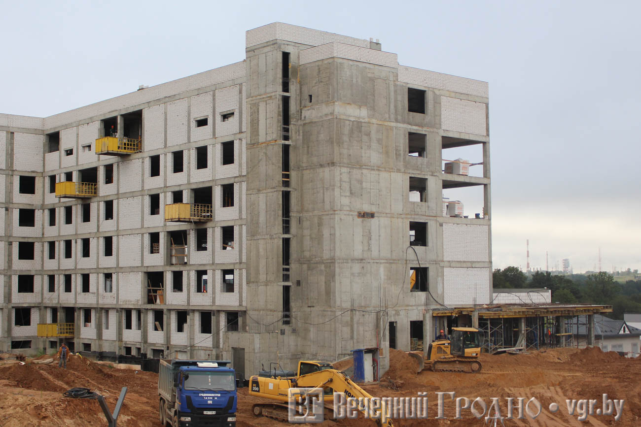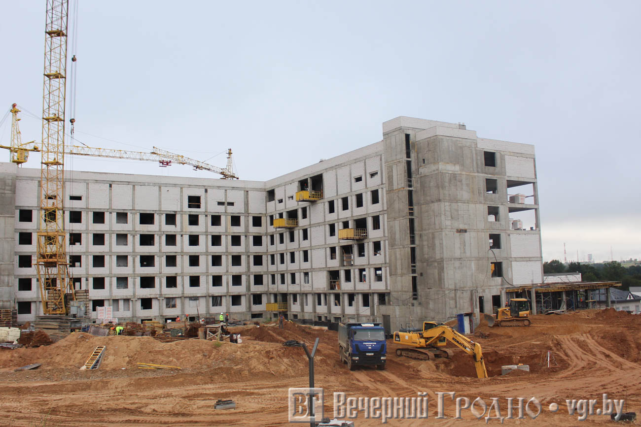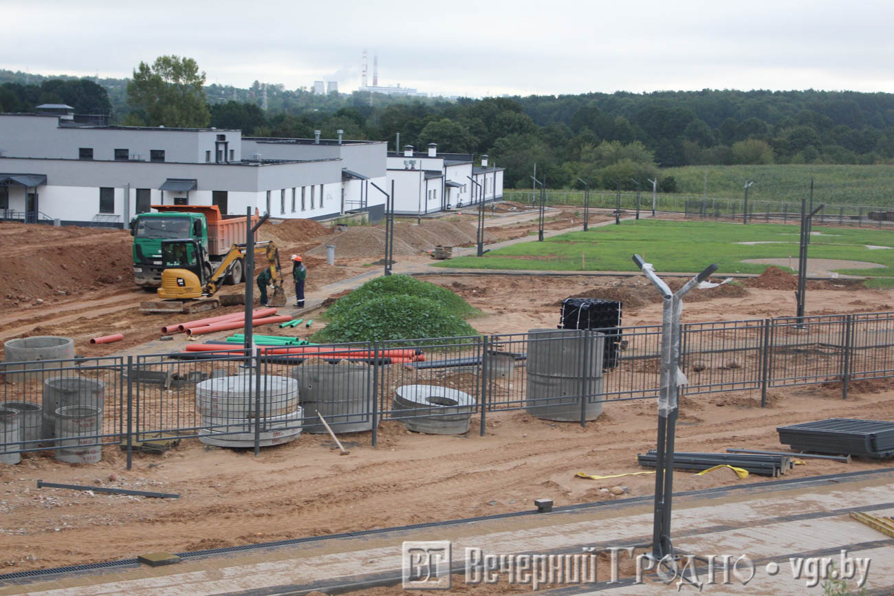 В Гродно на проспекте Янки Купалы продолжается строительство новой больницы. Одновременно с работами на объекте специалисты благоустраивают прилегающую территорию.