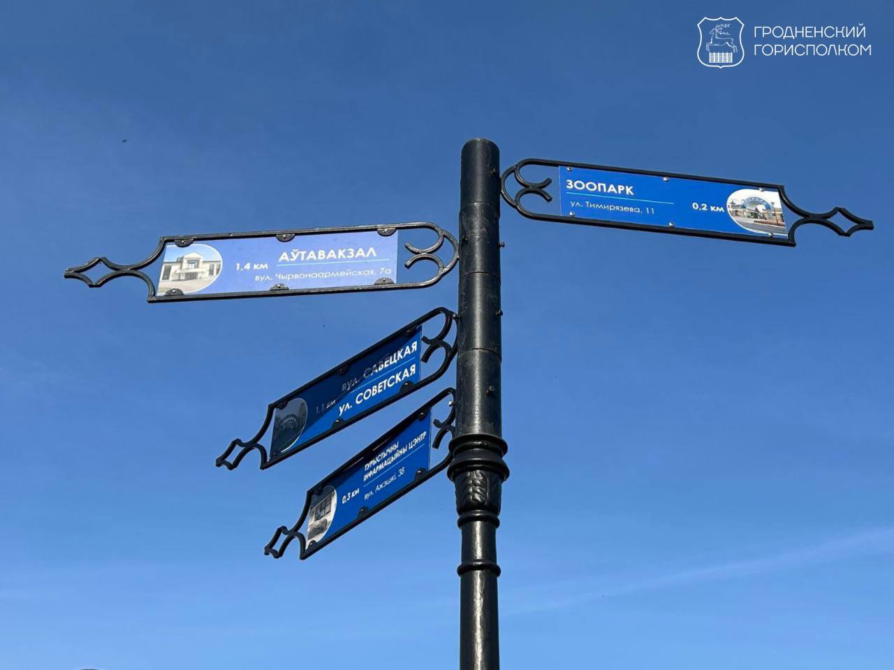 Первые появились в центре города, рядом с железнодорожным вокзалом. На них есть информация о главных достопримечательностях: адреса, расстояния и картинка для легкой навигации. Всё на русском и белорусском языках, пишет горисполком.