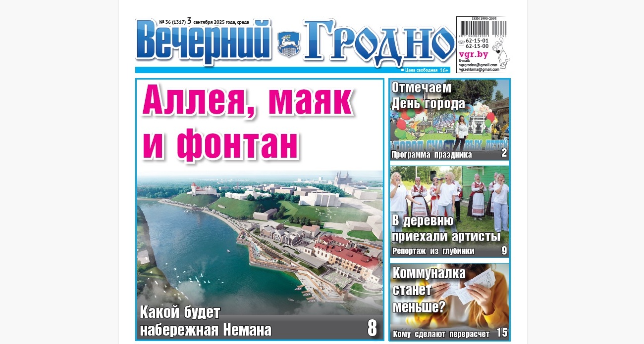 Концерт в деревне, будущее набережной Немана и программа Дня города — анонс свежего номера газеты «Вечерний Гродно»