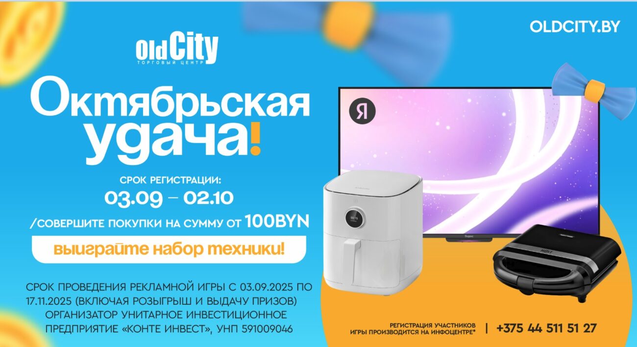 С полными правилами рекламной игры «Октябрьская удача» можно ознакомиться на сайте https://oldcity.by/
