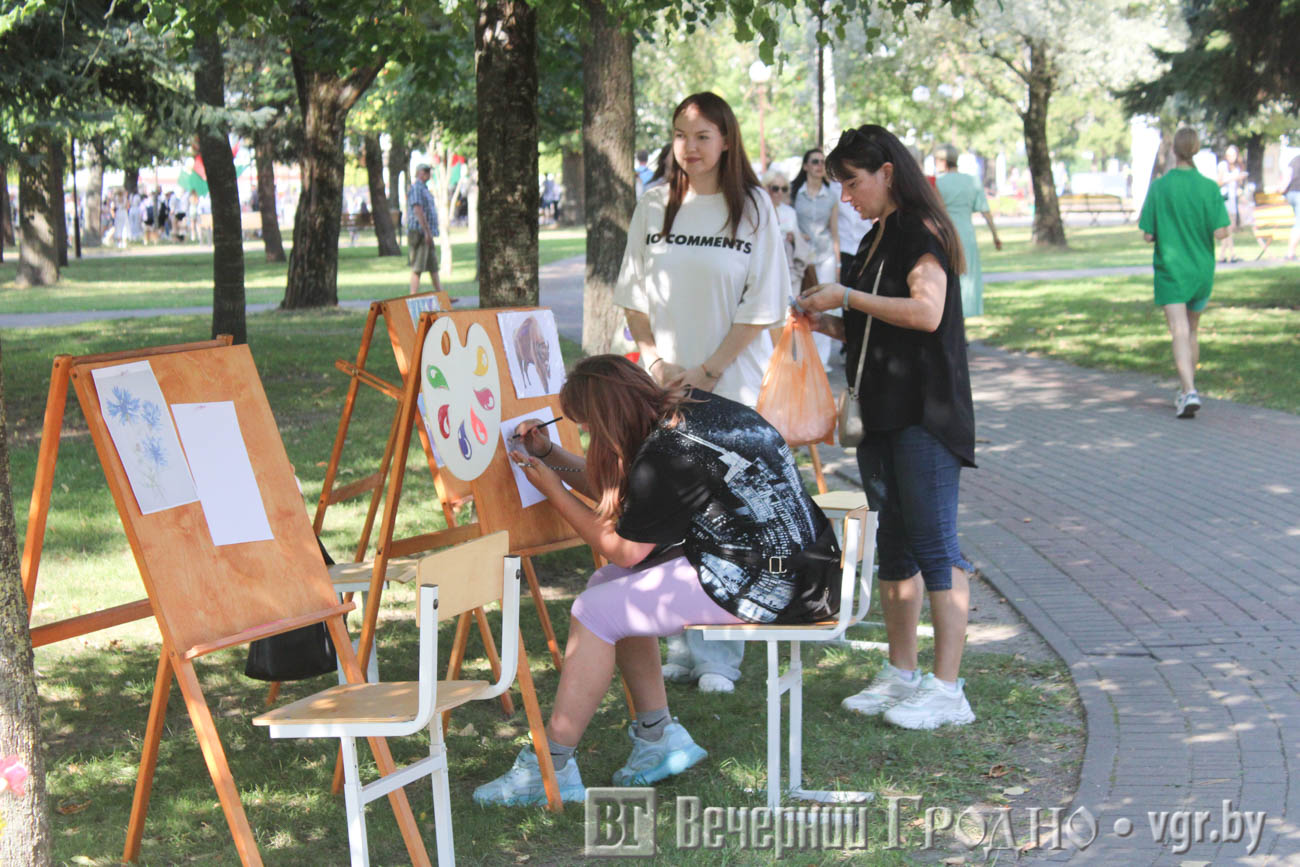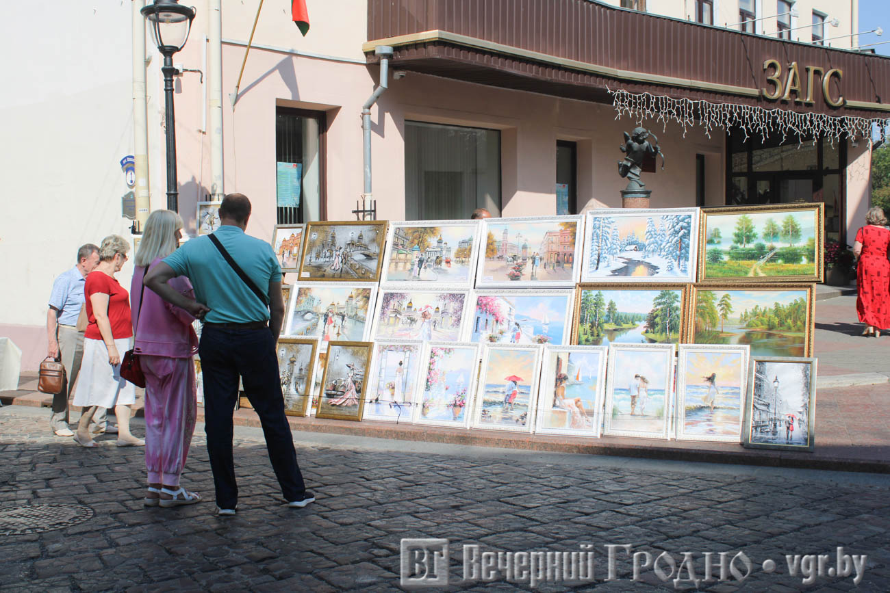 На Советской улице традиционно разместились ремесленные ряды, где можно купить магниты с видами Гродно, посуду из дерева, игрушки, кожаные изделия, бижутерию, картины и много другое. Публику развлекали ходулисты и живые скульптуры.