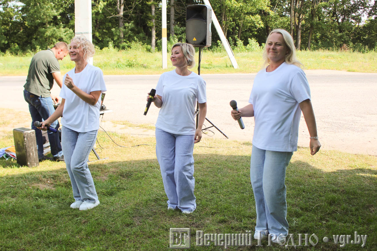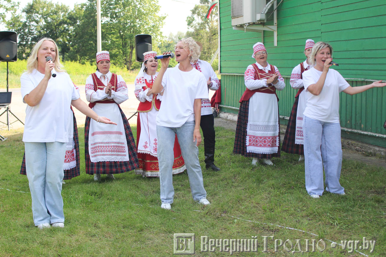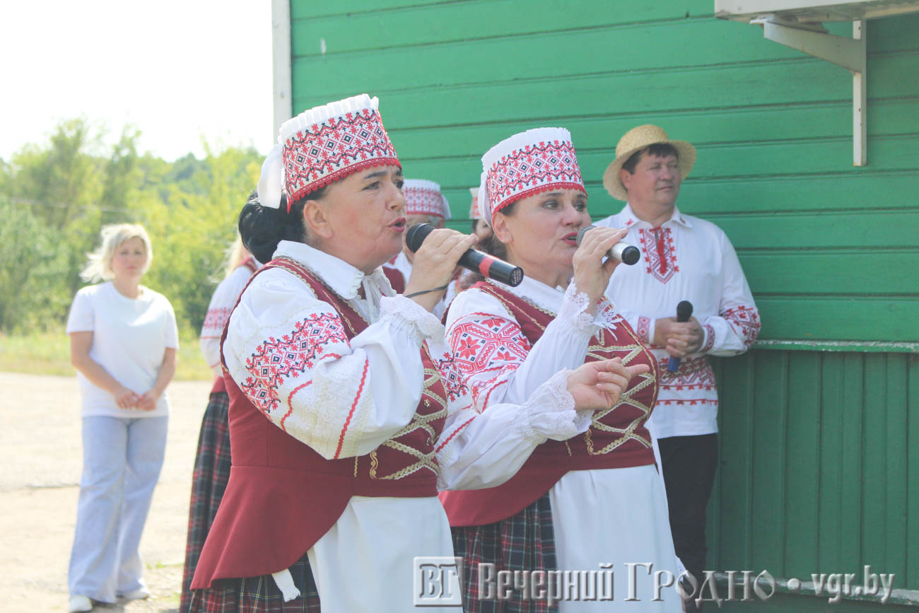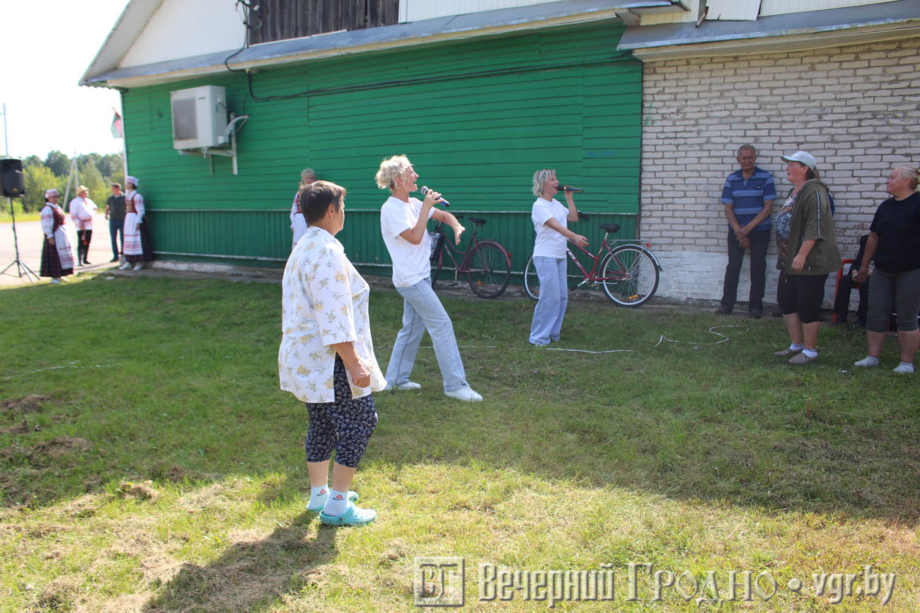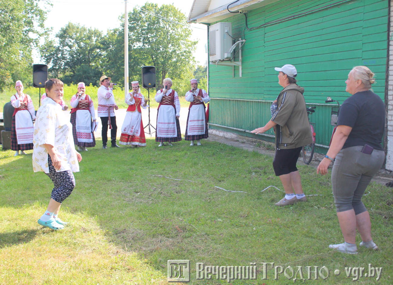 В деревню приехали артисты народной театр-студии игры «Суседзі». Этому коллективу больше 40 лет, в нем выступают Татьяна Янушкевич, Светлана Гросс, супруги Баклушины Людмила и Александр, а также золотой голос Дятловщины Тамара Ступак — участница ТВ-шоу «Ты супер 60+» на НТВ. Она исполнила песню «Мой родны кут», от которой у самой артистки и зрителей выступили слезы.