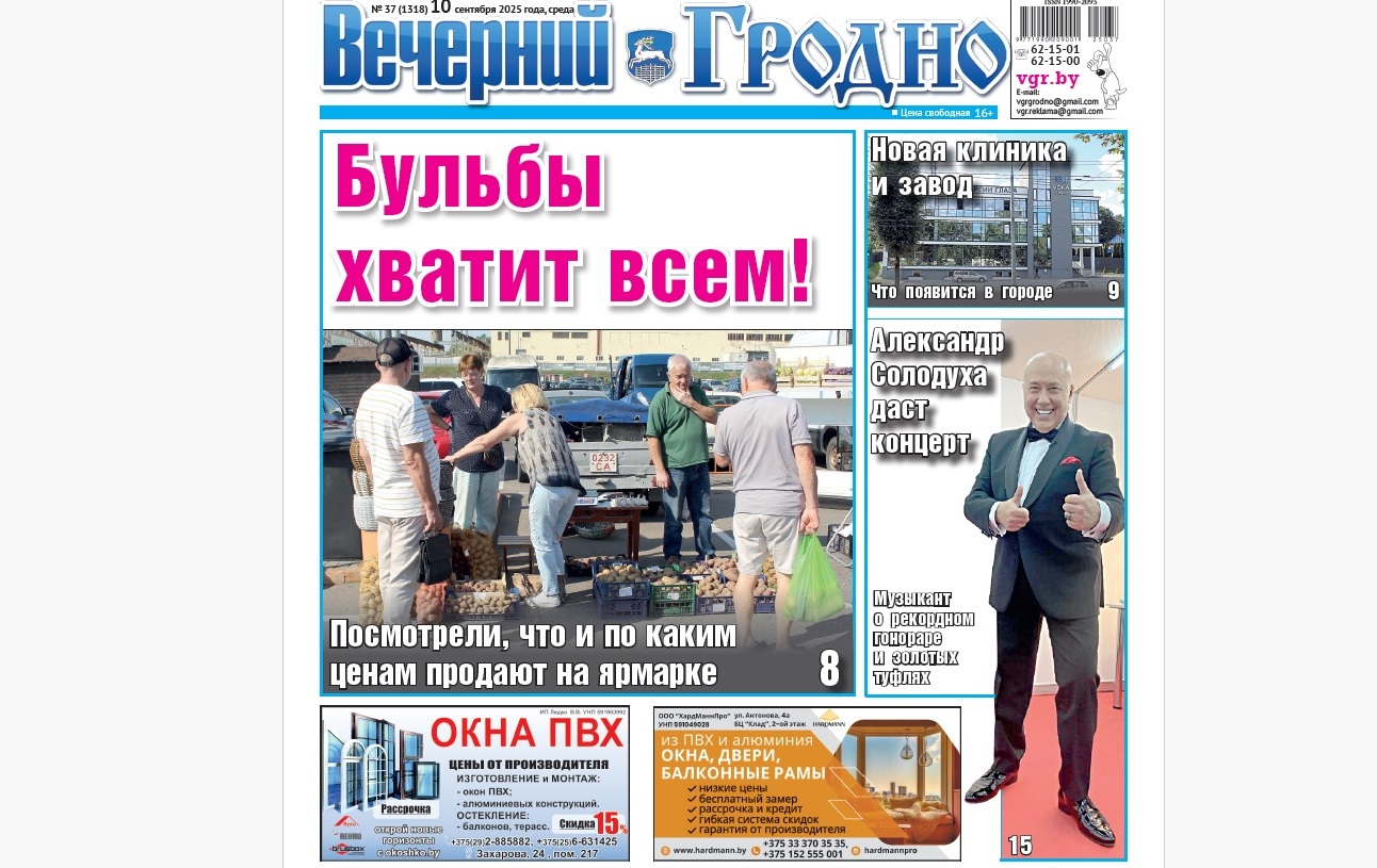 Интервью с Александром Солодухой и цены на сельхозярмарке — анонс свежего номера газеты «Вечерний Гродно»