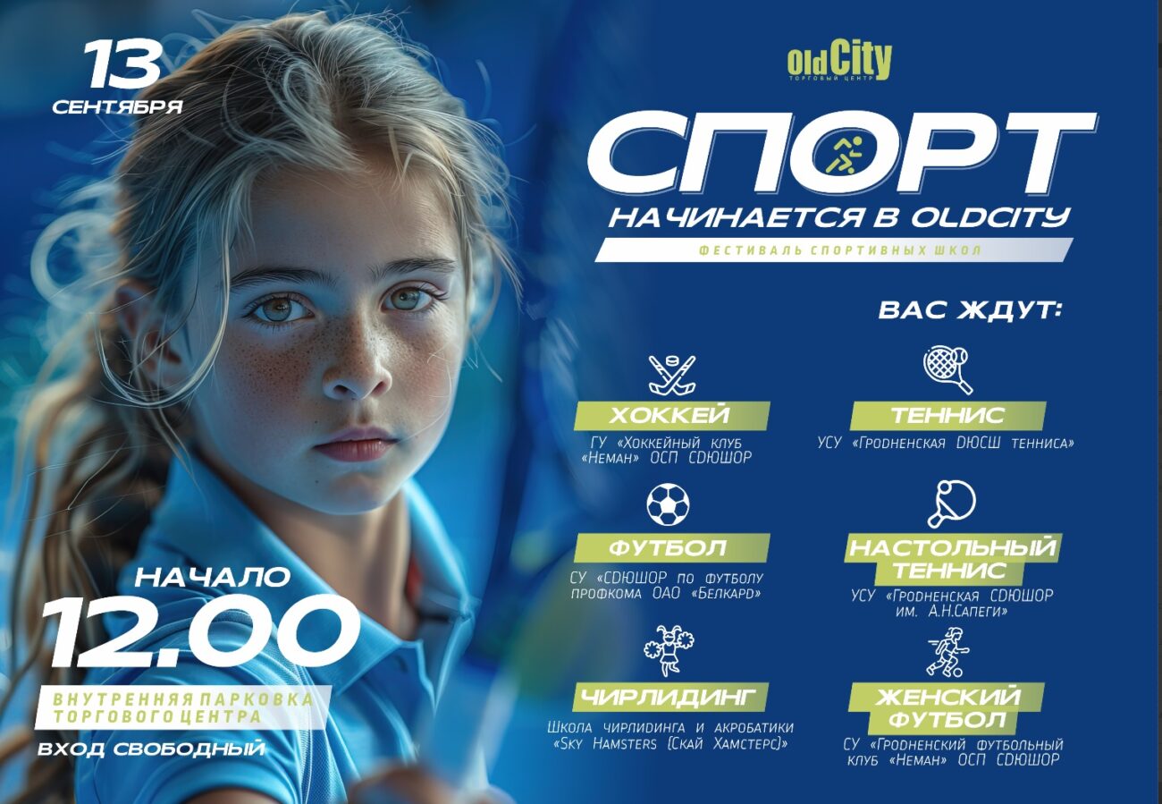 13 сентября (суббота) в 12:00 на внутренней парковке торгового центра OldCity состоится грандиозное спортивное мероприятие – «Спорт начинается в OldCity!». На одной площадке соберутся одни из ведущих спортивных школ города, чтобы ваш ребенок смог открыть для себя все разнообразие спортивных направлений и сделать свой выбор.