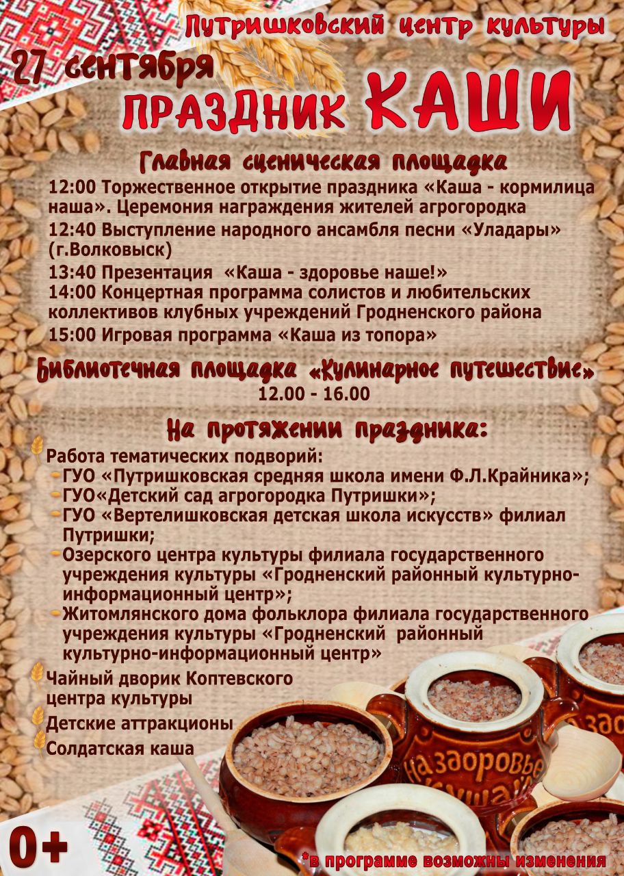 В субботу, 27 сентября в 12.00 на площадке Путришковского центра культуры пройдет необычный праздник «Каша — кормилица наша».