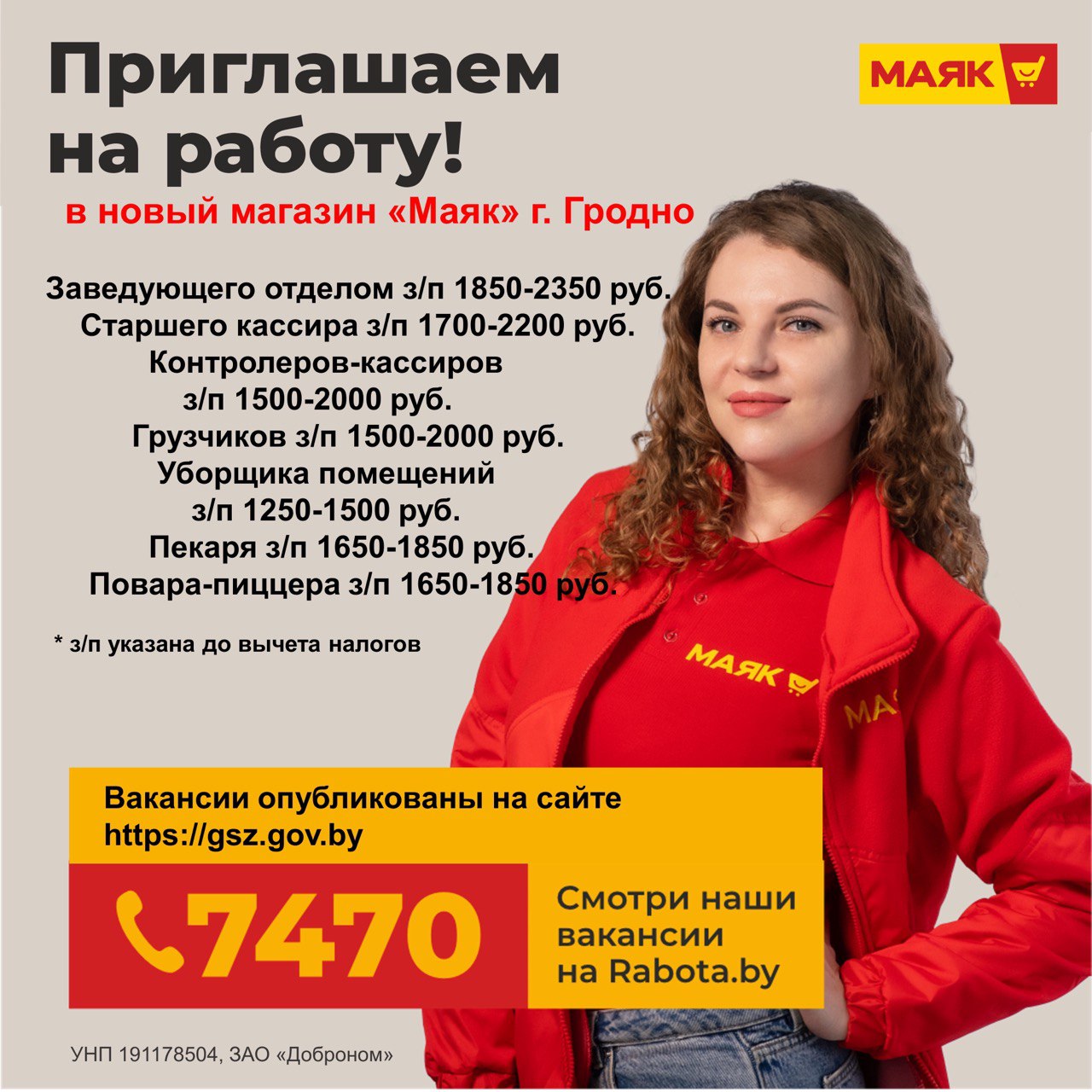 Новый магазин «Маяк» в Гродно приглашает на работу!